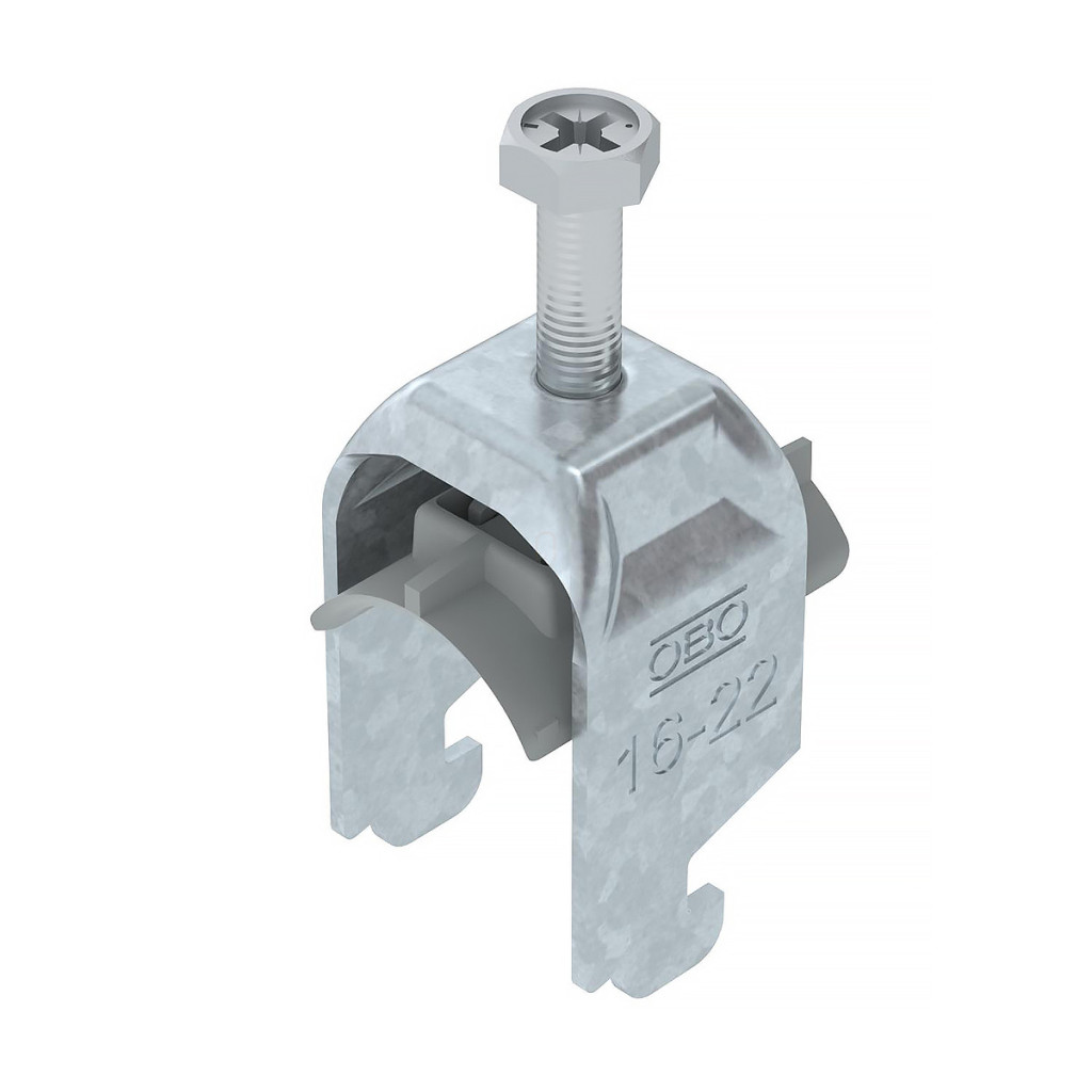 Clemă OBO BBS tip N, zincată la cald, pentru 1 cablu, cu placă de presiune din plastic, pentru 16-22 mm, lățime spațiu 11-12 mm BS-N1-K-22 FT 1187214