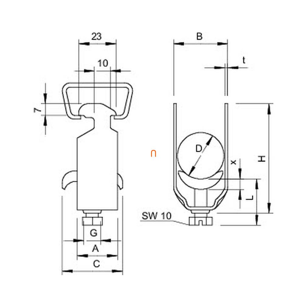Clemă OBO BBS, tip H, zincată la cald, pentru 3 cabluri, cu placă de presiune metalică, pentru lățimi de spațiu de 12–16 mm și 16–17 mm 2056 M3 16 FT 1156268