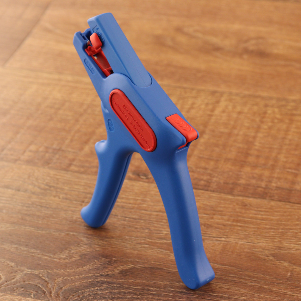 Dispozitivul de dezizolare REV facilitează pregătirea cablurilor pentru conectarea unor cabluri cu secțiunea de 0,2-6 mm². Unealta poate tăia fire de până la 2 mm și poate dezizola lungimi de 5-12 mm.