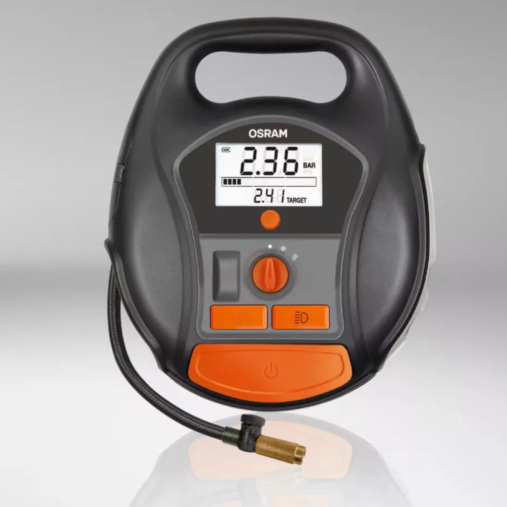 Osram Tyreinflate 6000 reprezintă o nouă generație de pompe digitale pentru umflarea anvelopelor, concepută special pentru cei care nu se mulțumesc cu funcțiile de bază, ci caută o soluție complexă și versatilă, atât pentru utilizarea în vehicule, cât și pentru uz casnic. Acest dispozitiv modern, fără fir, reîncărcabil, are o baterie litiu-ion care vă permite să îl utilizați în mod eficient nu numai pentru mașini, motociclete și biciclete, ci și pentru saltele gonflabile, mingi și alte echipamente de agrement. Una dintre cele mai remarcabile caracteristici ale Tyreinflate 6000 este viteza sa: poate umfla un pneu de 13 inch de la gol la 2,4 bari în doar 2 minute. Datorită funcției de oprire automată încorporată, compresorul se oprește exact în momentul în care atinge valoarea de presiune prestabilită, astfel încât nu trebuie să vă faceți griji cu privire la umflarea excesivă sau insuficientă. De asemenea, este încorporată o supapă de eliberare separată pentru a elibera excesul de aer. Afișajul digital mare de 76 x 46 mm cu iluminare din spate arată clar valorile actuale ale presiunii, care pot fi afișate în unități PSI, kPa sau bar, astfel încât să vă puteți orienta întotdeauna cu ușurință, chiar și în întuneric. Lumina LED puternică iluminează, de asemenea, supapa și zona de lucru, ceea ce este deosebit de util atunci când utilizați dispozitivul noaptea sau în condiții de iluminare slabă. Dispozitivul are o presiune maximă de 5,5 bar, acoperind majoritatea domeniilor de aplicare. Debitul de aer de 43-45 litri/minut asigură umflarea rapidă și eficientă chiar și a dispozitivelor cu volum mai mare. Funcția powerbank a Tyreinflate 6000 vă permite să încărcați alte dispozitive, cum ar fi telefonul, prin portul USB încorporat, oferind o libertate și un confort și mai mari. Pachetul include un set de 10 adaptoare care asigură conexiunea potrivită pentru fiecare aplicație posibilă, precum și 4 capace de rezervă pentru supape, o siguranță de rezervă și o pereche de mănuși. Furtunul de aer de 70 cm și cablul de alimentare de 3,5 metri vă permit să ajungeți confortabil în orice punct al vehiculului, fie că este vorba de o rulotă mare sau de o dubiță mică. Puterea nominală de 180 de wați și conexiunea la rețeaua de 12 volți asigură funcționarea puternică și fiabilă a dispozitivului. O încărcare completă durează aproximativ 10 ore, dar datorită bateriei de mare capacitate, acesta poate umfla mai multe anvelope succesiv. Deci, dacă doriți un compresor versatil, puternic și bine echipat, care nu numai că vă ajută să umflați anvelopele, dar poate fi utilizat și pentru aproape orice dispozitiv gonflabil, Osram Tyreinflate 6000 este una dintre cele mai bune alegeri. Cu accesoriile sale practice, designul ușor de utilizat și performanța ridicată, vă asigură că sunteți întotdeauna pregătit pentru drum, fie că este vorba de utilizarea zilnică sau de călătorii mai lungi.