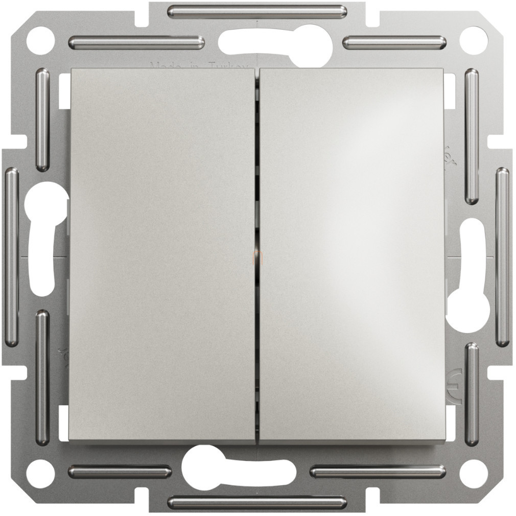ASFORA Comutator dublu, conexiune cu arc, bronz (106+6) EPH0600169 Schneider ASFORA Comutator dublu, conexiune cu arc, bronz (106+6). Familie de produse: Asfora - Tip ambalaj: flow-pack. Avantaje: Ruptura cu tradiția și obiceiurile, utilizarea accesoriilor colorate pentru diverse funcții de iluminat și confort., Comandă rulou, Comutator cu indicator luminos, Dimmer. Datorită gamei largi de conectori, nu veți pierde nimic și vă veți putea bucura cu adevărat de timpul liber, deoarece există numeroase funcții pentru confortul dvs.: priză TV/R/SAT, conector de date RJ45, conector pentru difuzoare. Pe lângă faptul că adaugă stil casei dvs. cu liniile lor elegante, produsele Asfora respectă standardele actuale și sunt fabricate din materiale solide și durabile. Priză cu capac, priză IP44. Aplicații: Clădiri rezidențiale, birouri și clădiri comunitare.