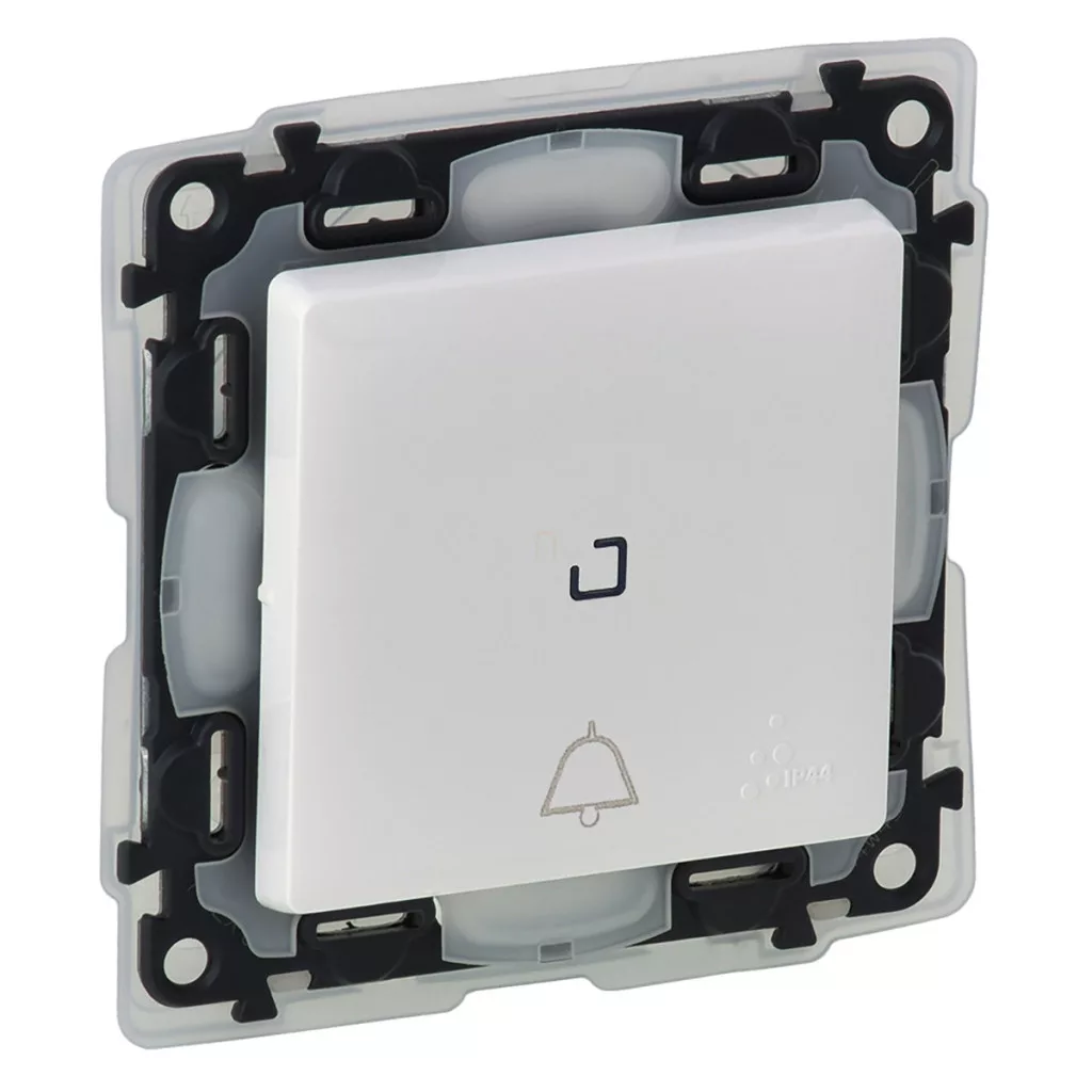 Buton Valena Life 752176 cu contact de protecție, IP44, cu semnal sonor și indicator luminos, alb Legrand
