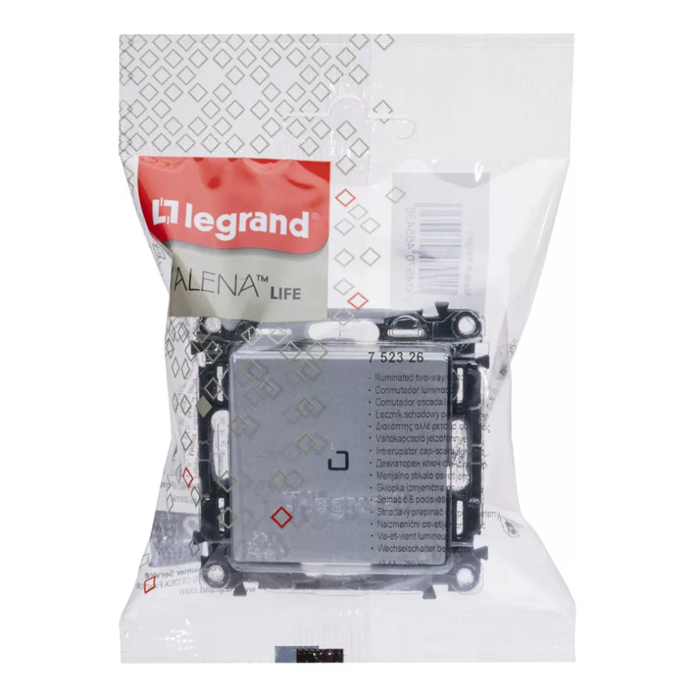 Comutator Legrand Valena Life cu indicator luminos 10 AX aluminiu - 752326
