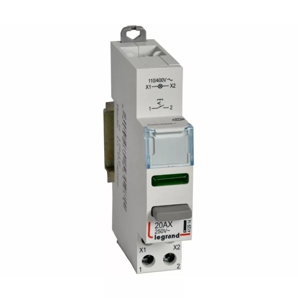 Leg.412914 Comutator cu buton CX3 1Z + LED verde 110/400 V