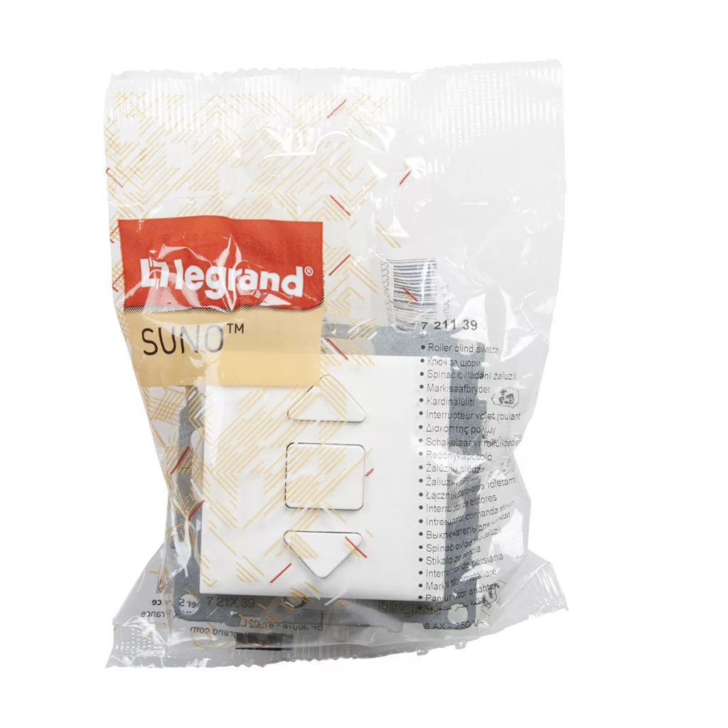 Comutator pentru rulouri Legrand Suno (3 poziții) 6A, pentru control direct al motoarelor cu întrerupătoare mecanice de limitare, alb - 721139