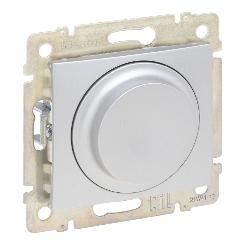 Comutator rotativ cu buton rotativ Legrand Valena, aluminiu, 2 fire, 300 W, compatibil și cu LED-uri - 770263