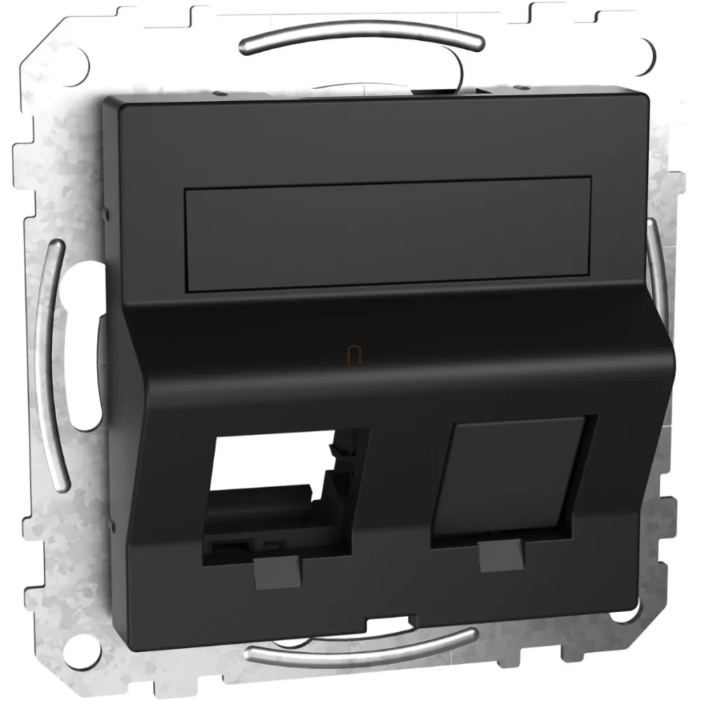 Conector de date Schneider Merten 2xRJ45, pentru inserții Lexcom, etichetabil, System-M, negru MEG4568-0403
