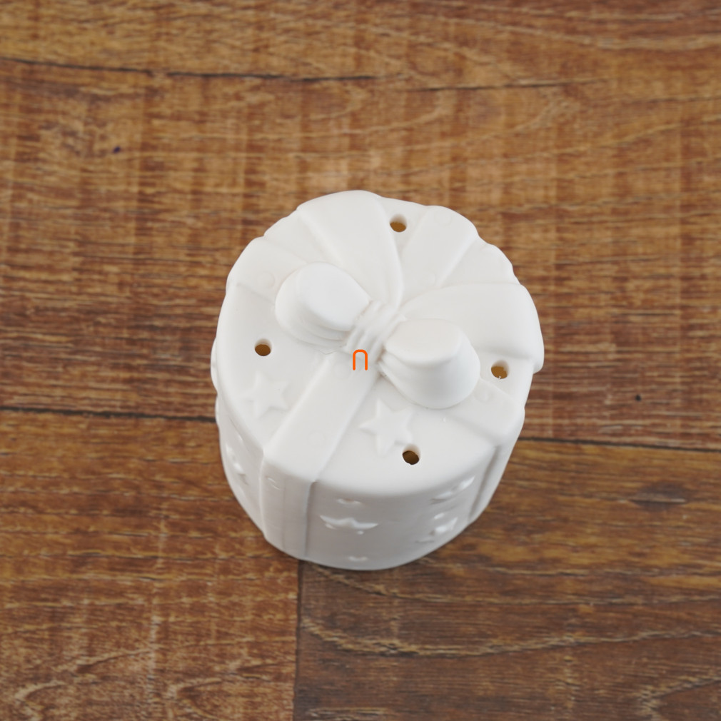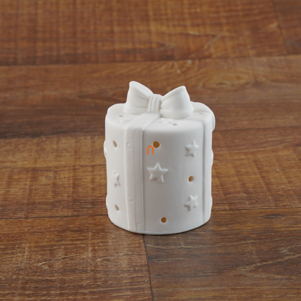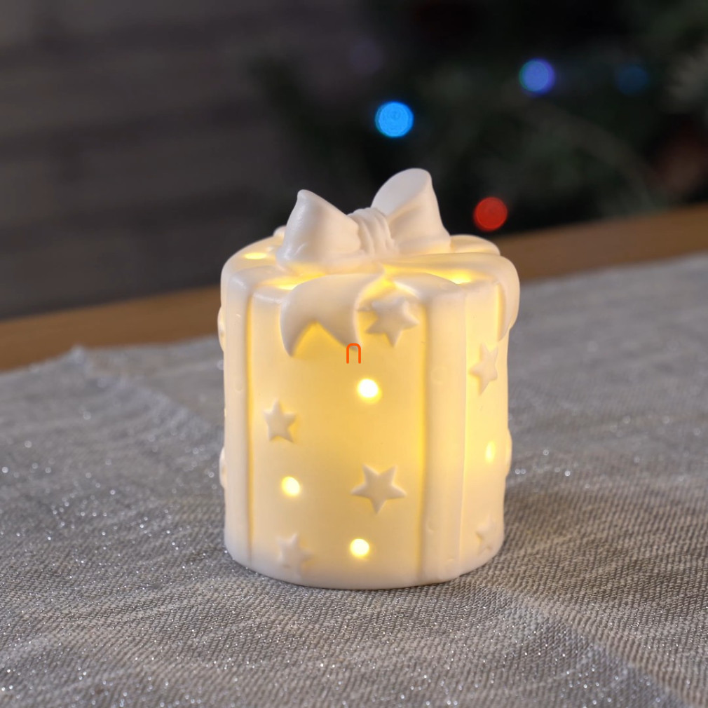 Cutie cadou din ceramică iluminată de Crăciun cu panglică, 9,6 cm