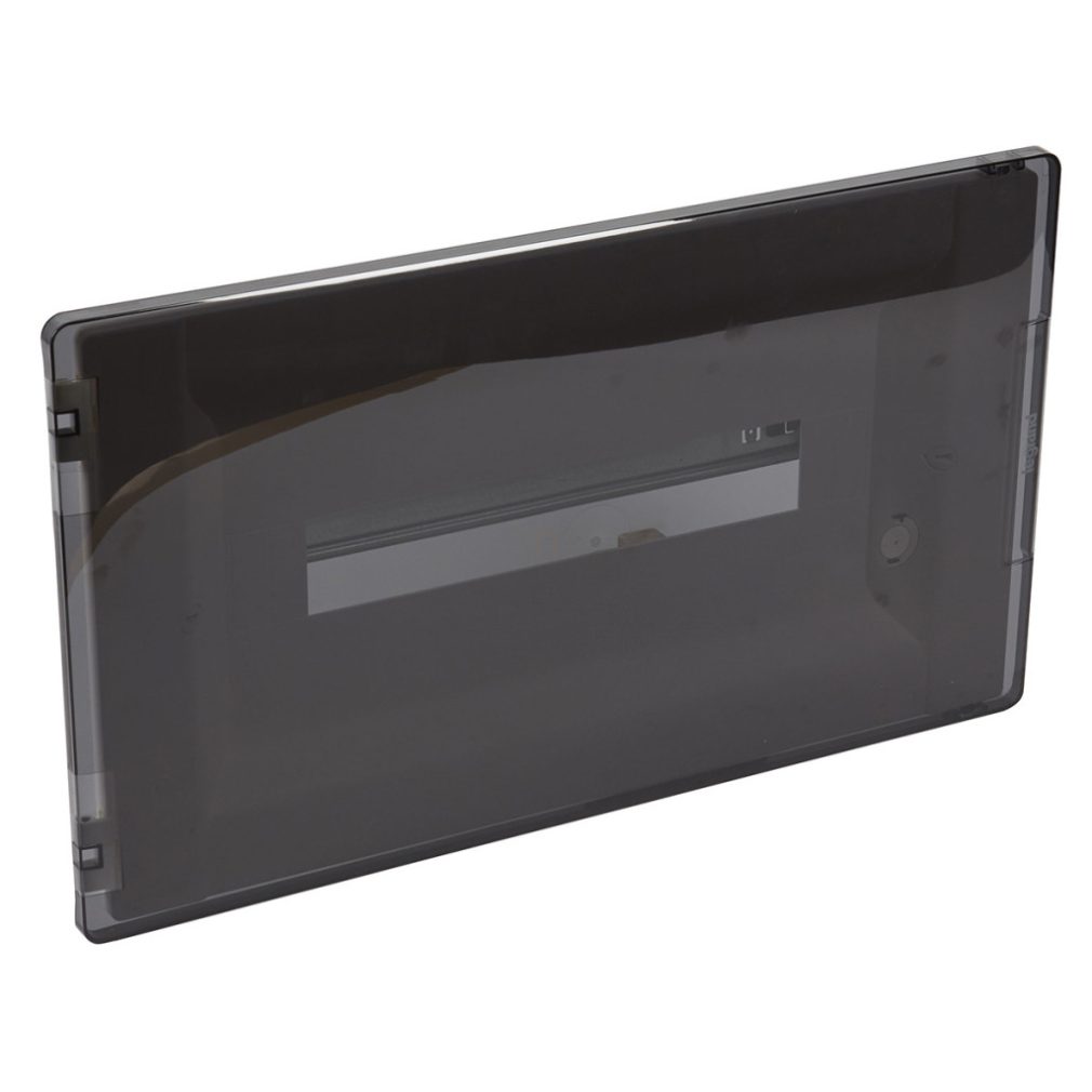 Cutie de distribuție încastrată Legrand Practibox3, ușă transparentă de culoare fumurie, terminal de protecție la pământ și neutru, 1 rând 18 module, 234x422 - 401756