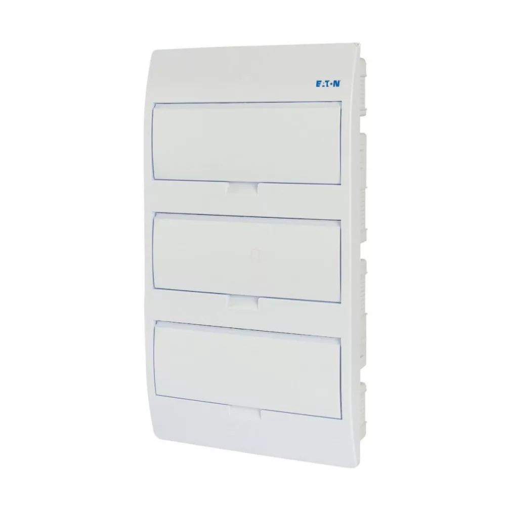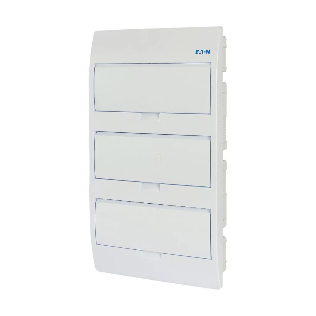 Cutie de distribuție mică, încastrată, 3 rânduri, 36 module, cu ușă albă solidă, șină IP40 PE/N, Eaton BC-U 284643