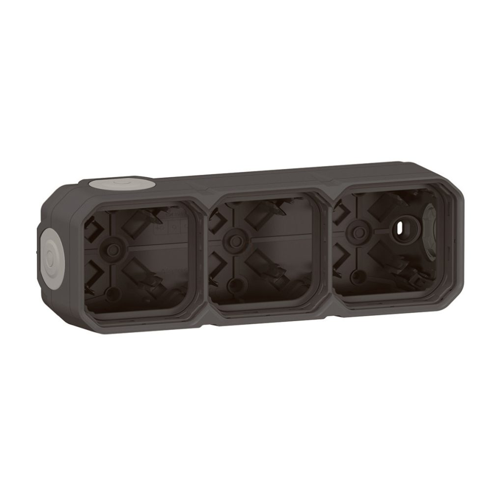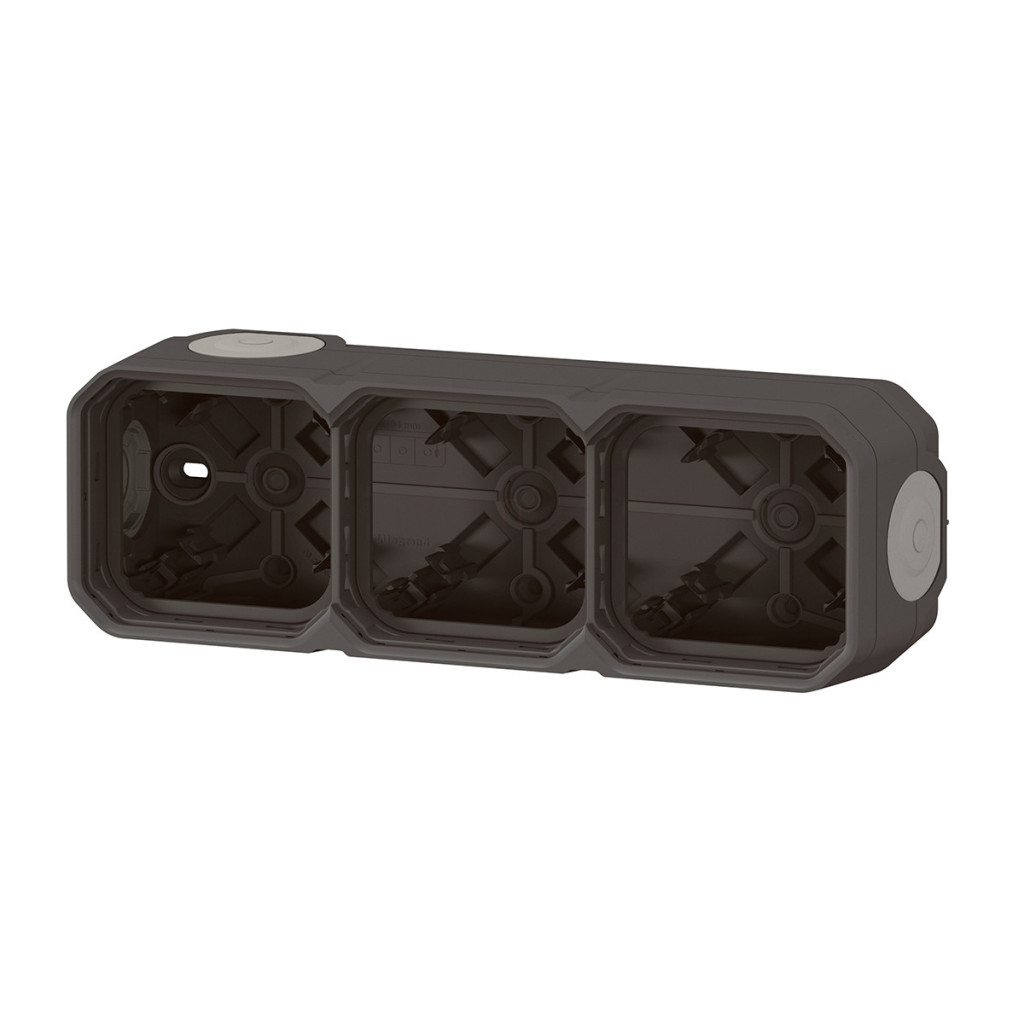 Cutie de montare pe suprafață Legrand Plexo 55 cu 3 prize, membrană, antracit - 069603L