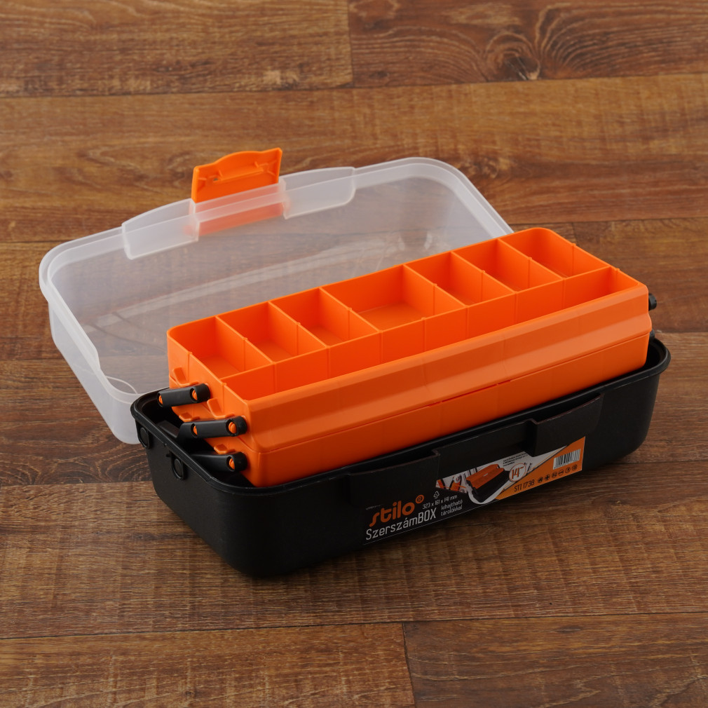 Cutie de scule Stilo cu compartimente de depozitare rabatabile și capac transparent de 14 inch 323x161 - STI1738