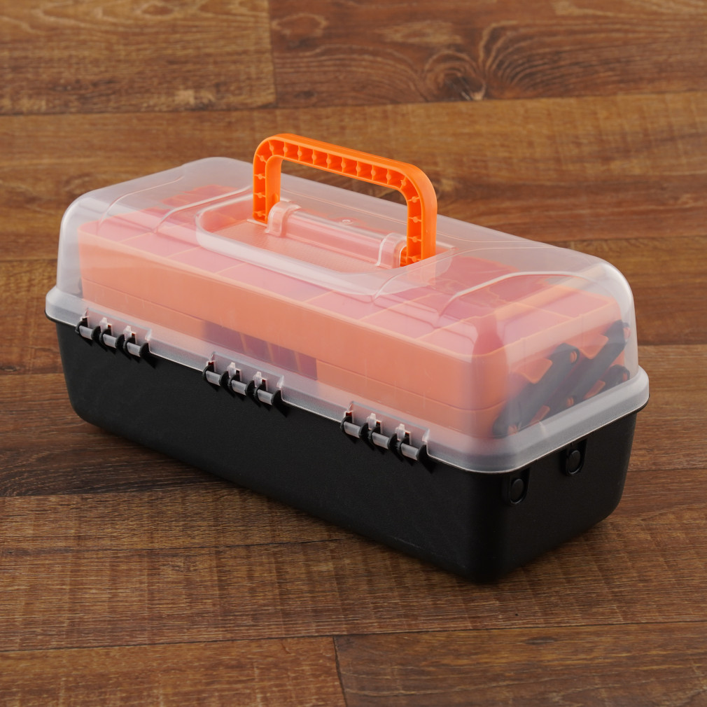 STI1738 Cutie de scule Stilo cu compartimente de depozitare rabatabile și capac transparent de 14 inch, 323 x 161 x 141 mm