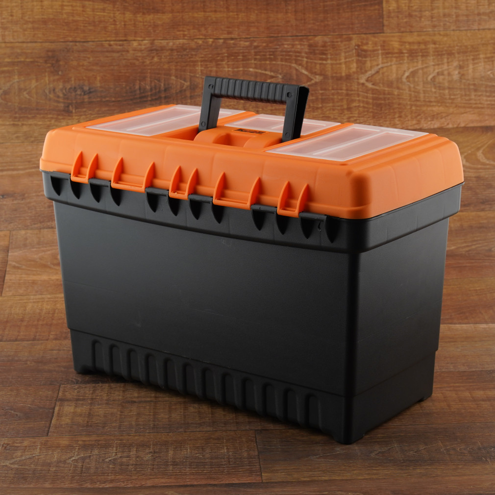 Cu dimensiunile de 486 x 267 x 320 mm, această cutie oferă suficient spațiu pentru cele mai importante scule, fiind în același timp suficient de compactă pentru a fi transportată cu ușurință. Cadrul din plastic rezistent și cataramele metalice asigură o durată lungă de viață, chiar și în cazul utilizării zilnice. Mecanismul robust de blocare asigură că conținutul rămâne în siguranță în orice moment, chiar și atunci când mutați sau transportați cutia.