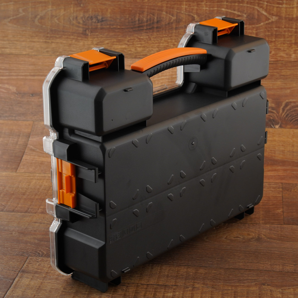 Dispunerea transparentă a compartimentelor facilitează găsirea rapidă a uneltelor, astfel încât nu mai trebuie să petreceți minute întregi căutând piesa potrivită. Dimensiunea compactă de 430 × 350 × 110 mm oferă o soluție optimă de depozitare, fără a ocupa prea mult spațiu.