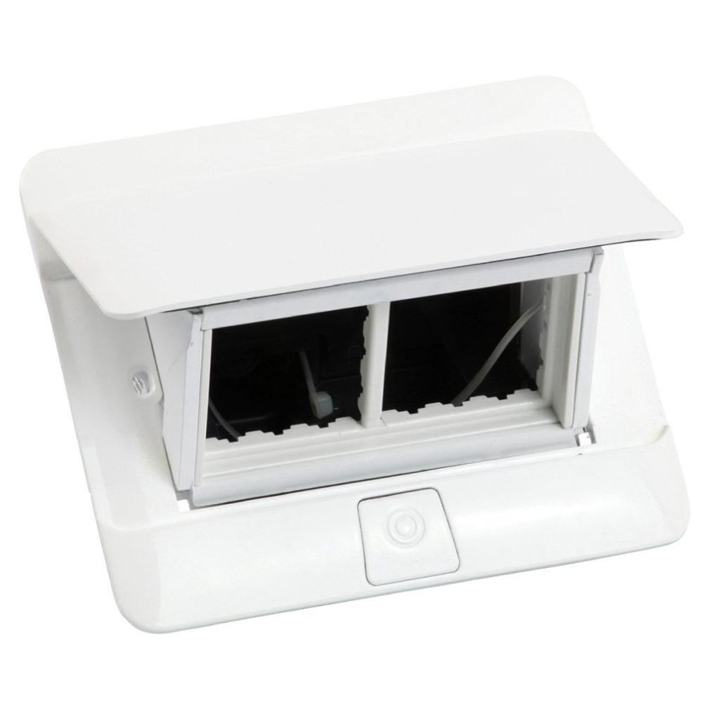 Cutie pop-up Legrand pentru mobilier, goală, 4 module, cu cadru de montare și cutie pentru cabluri, albă - 654001