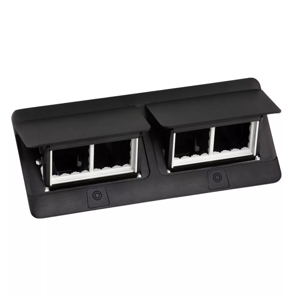 Cutie pop-up Legrand pentru mobilier, goală, 8 module, cu cadru de montare și cutie pentru cabluri, negru - 654005