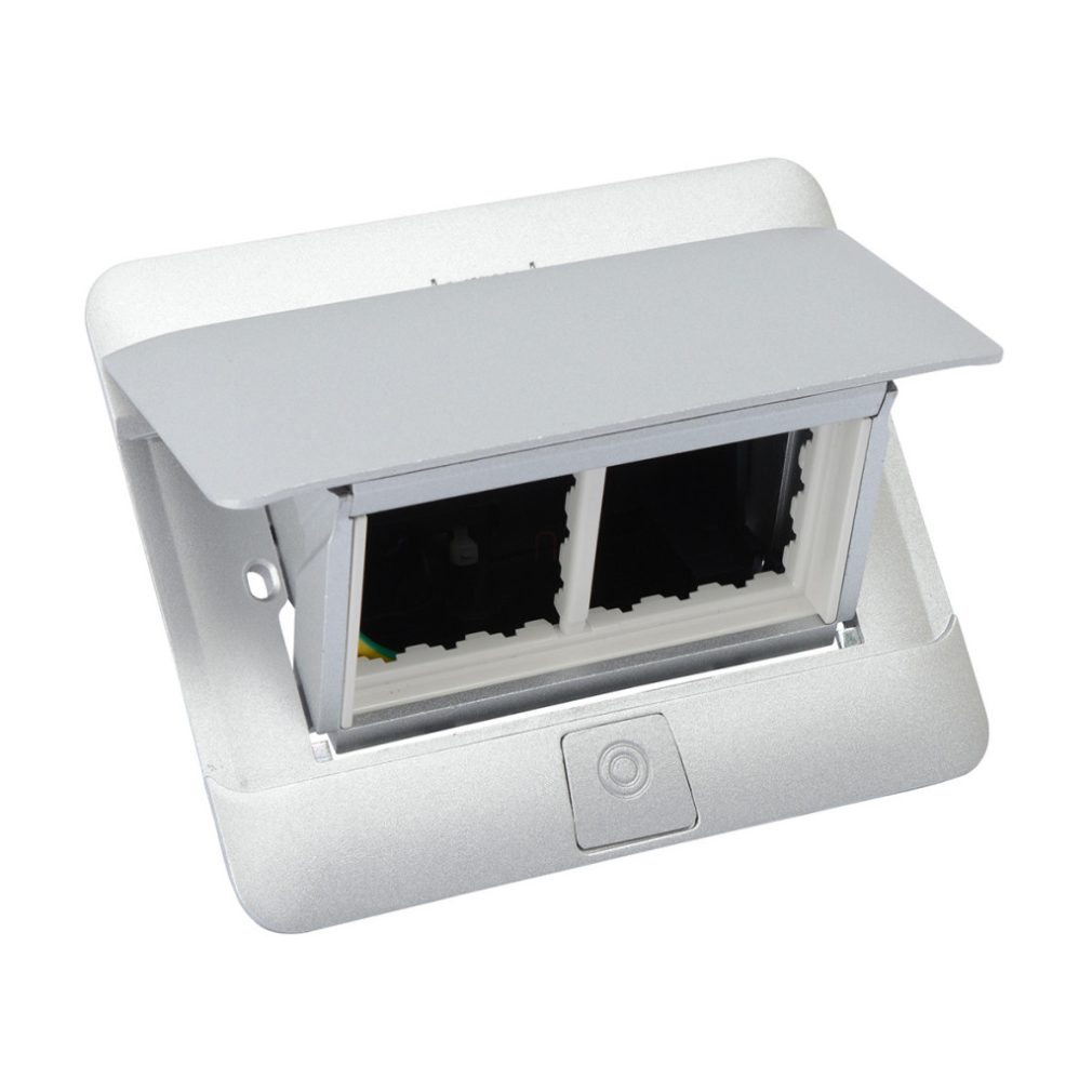 Cutie pop-up Legrand pentru panouri de mobilier, goală, 4 module, cu cadru de montare și cutie pentru cabluri, aluminiu - 654014