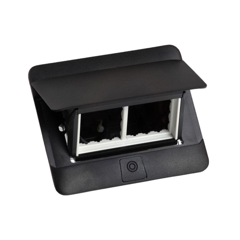 Cutie pop-up Legrand pentru panouri de mobilier, goală, 4 module, cu cadru de montare și cutie pentru cabluri, negru - 654002