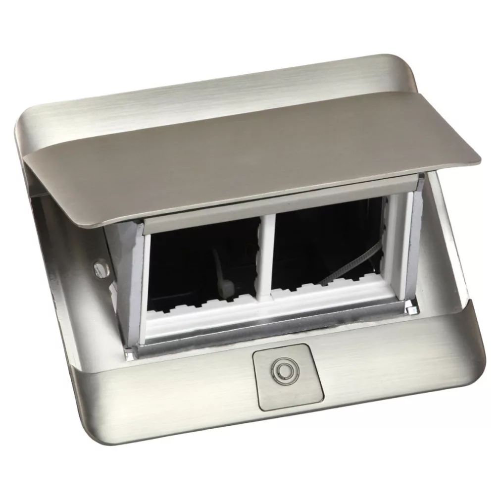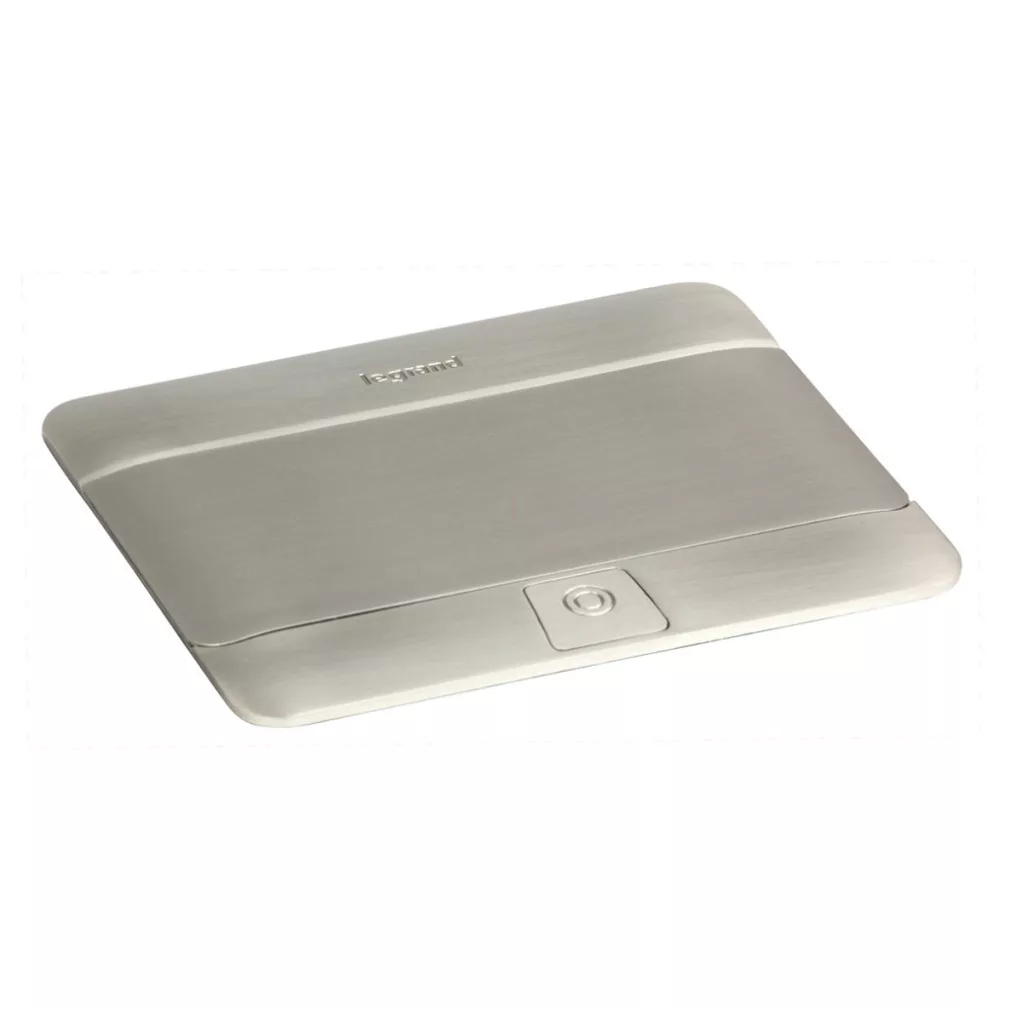 Cutie pop-up Legrand pentru panouri de mobilier, goală, 4 module, cu cadru de montare și cutie pentru cabluri, oțel inoxidabil - 654000