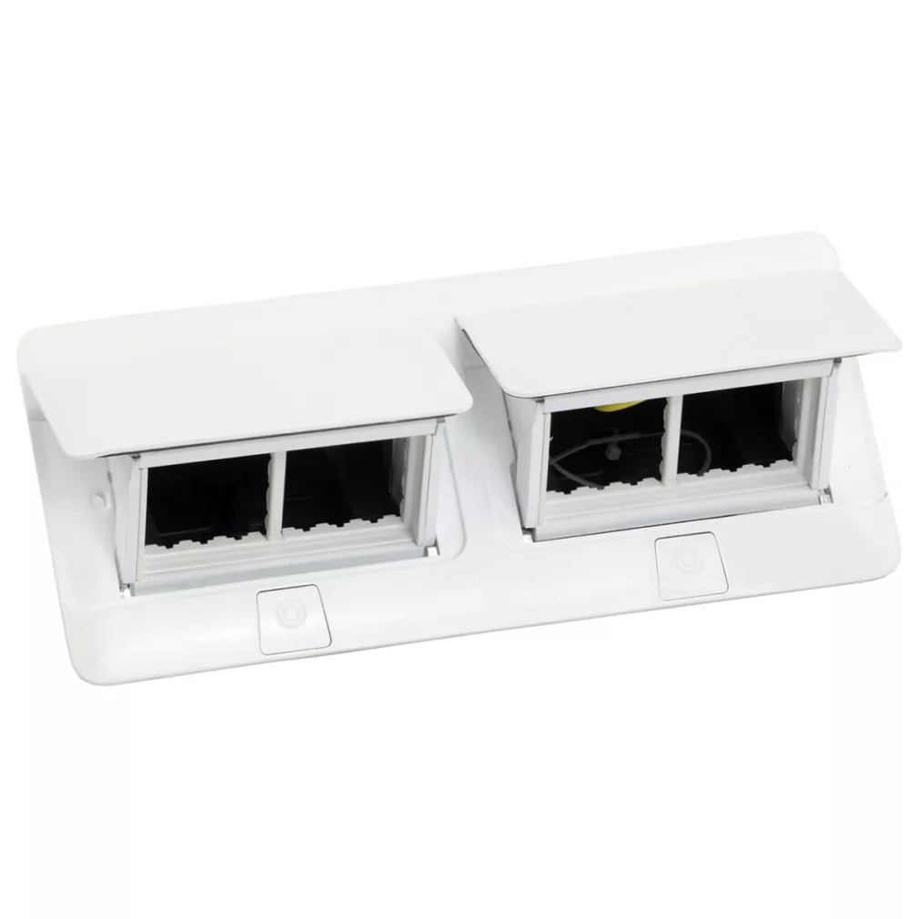 Cutie pop-up Legrand pentru panouri de mobilier, goală, 8 module, cu cadru de montare și cutie pentru cabluri, albă - 654004