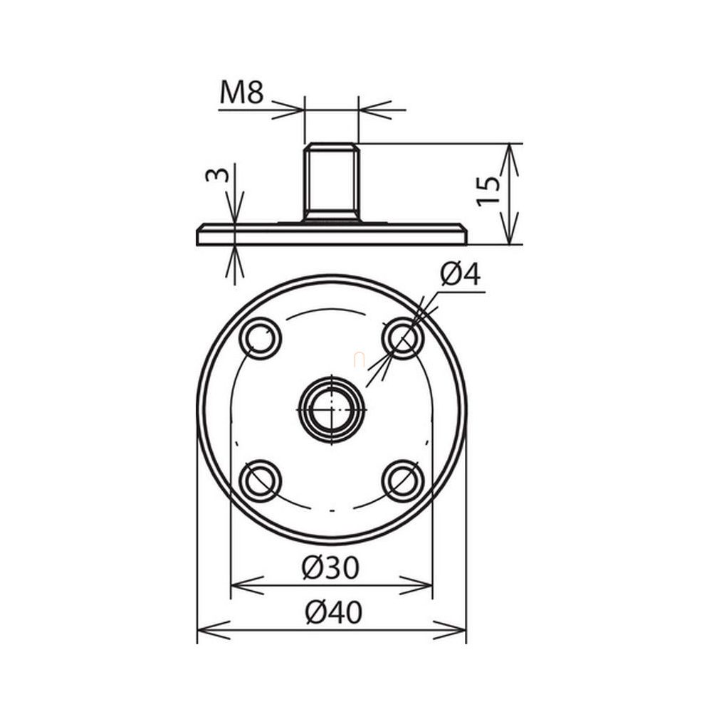 DEHN 297025 placă de montare D 40 mm din plastic cu șurub filetat M8 cu 4 orificii de montare BP D40 GBM8 4XB4 K GR