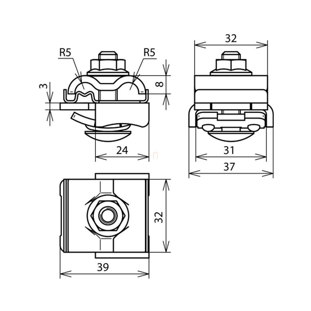 DEHN 365250 Clema pentru cablu UNI NIRO/Al Rd 8-10 mm pentru conductori de 4-50 mm² cablu de 0,7-8 mm UNI FK 8.10 KBF0.7 8 AL V2A