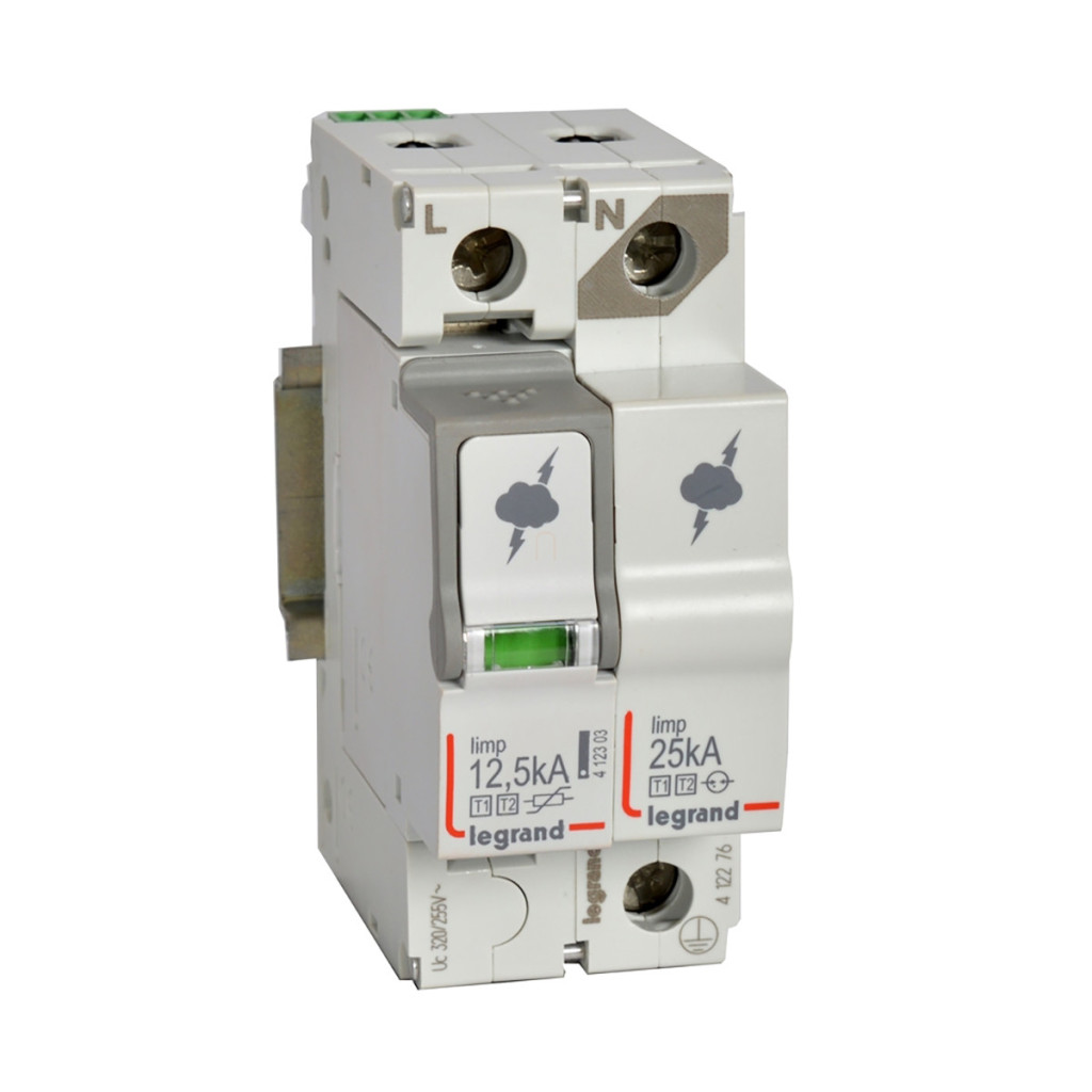 Legrand 412276 Dispozitiv de protecție împotriva supratensiunii T1+T2 12,5KA 1P+N NR +SD