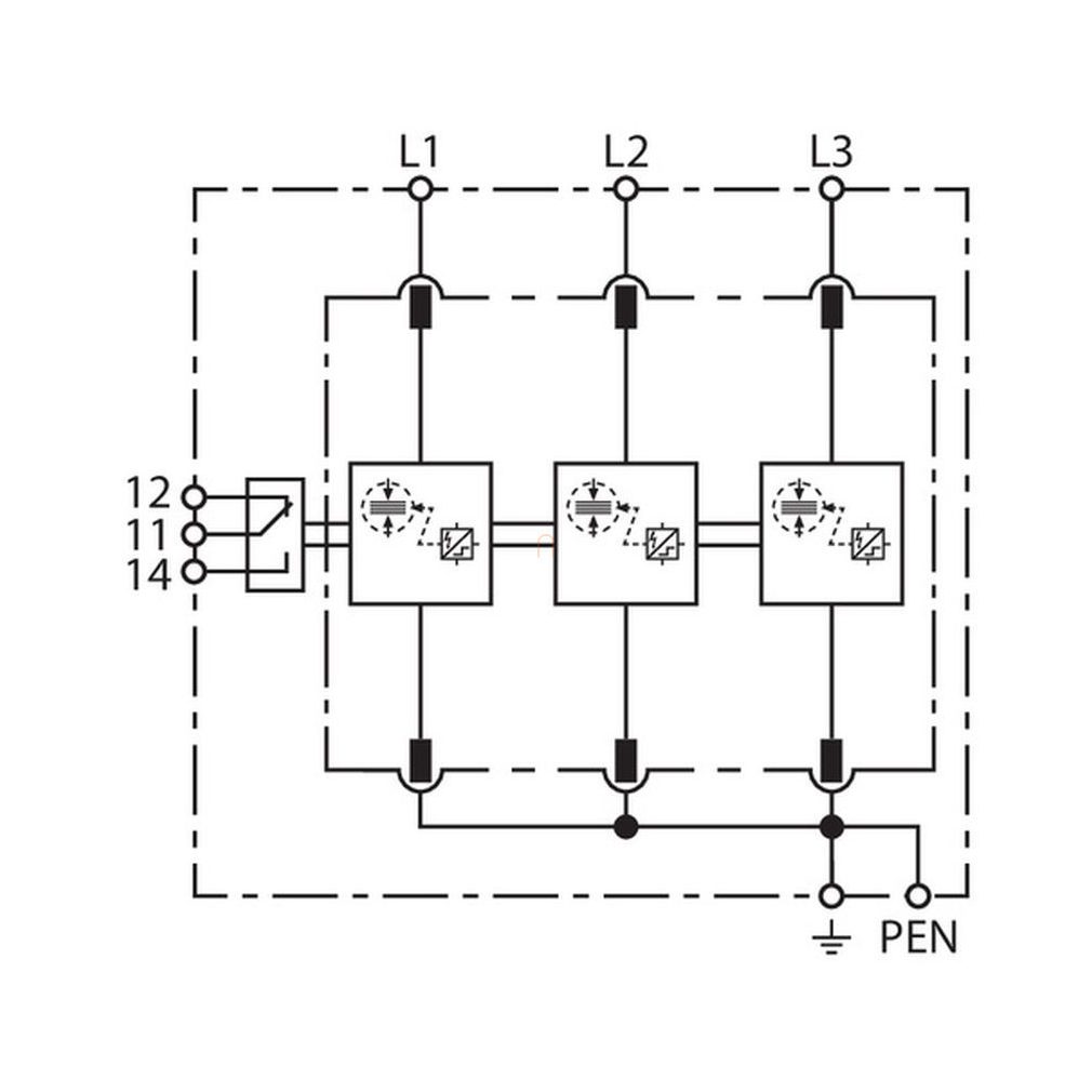Dispozitiv de protecție împotriva supratensiunii DEHNventil M2 pentru sistem trifazic TN-C (tip 1+2), cu contact de semnalizare la distanță DV M2 TNC 255 FM 956305