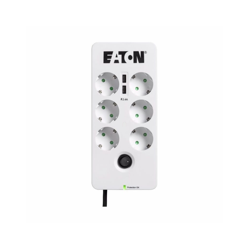 Eaton PB6TUD Cutie de protecție cu priză multiplă și protecție la supratensiune TEL 6xDIN+2xUSB
