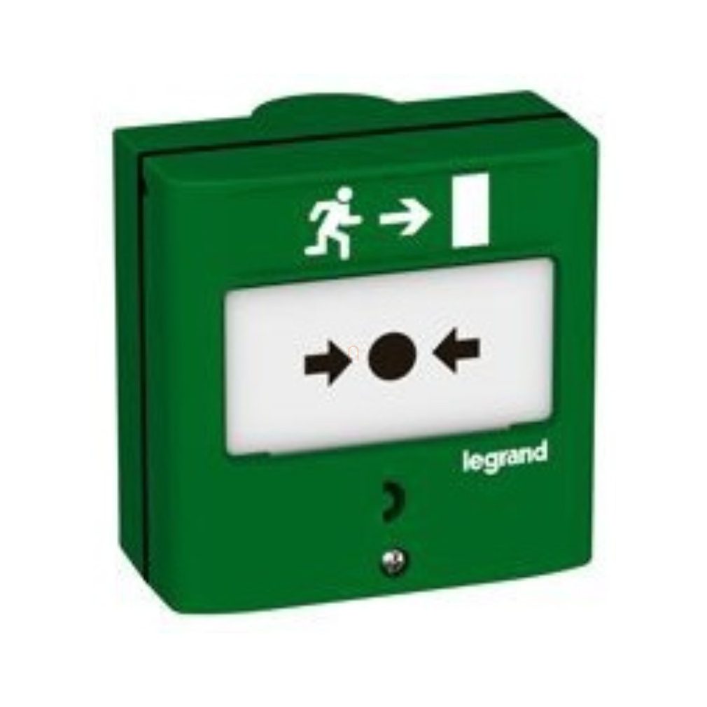 Dispozitiv de semnalizare manuală LeGrand pentru ieșiri de urgență, verde RAL 6016, cu 1 contact inversor-5A-24V=, IP30-IK07 - 138023