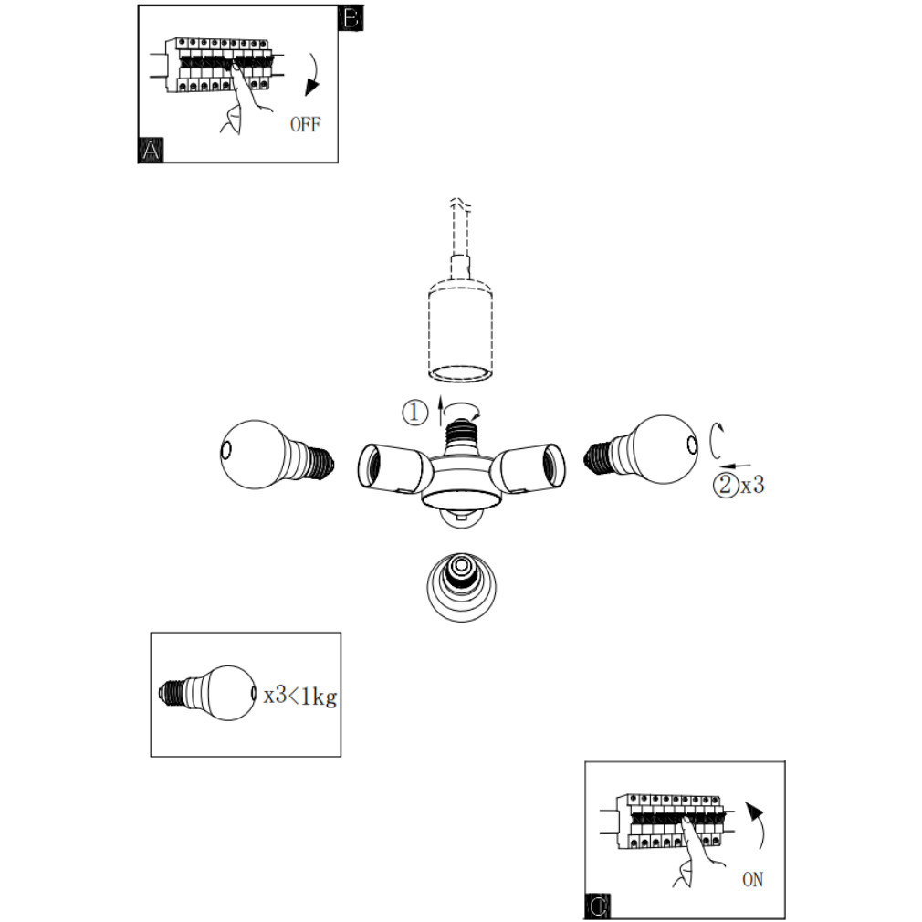 Distribuitor cu soclu E27, 19 cm, negru, cu trei prize - Rueda Eglo 98279