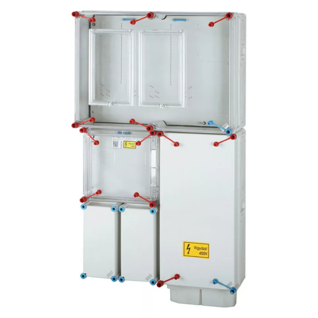 Cabinet de contor Hensel HB33K0F2-U1, pentru contoare generale și controlate monofazate sau trifazate, conexiune cablu de împământare (până la 50 mm²) 80 A zilnic și 32 A controlat/63 A tarif H