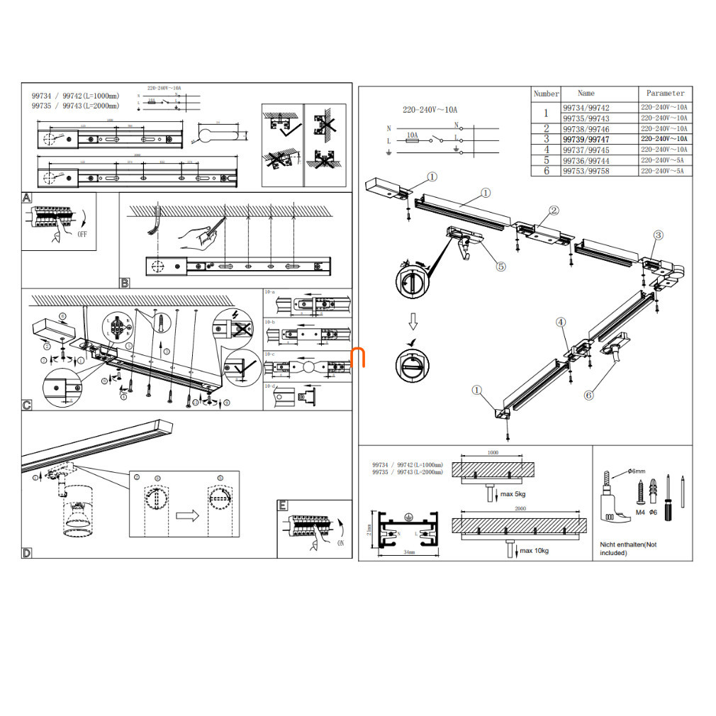 Elementul de conectare Eglo 99738 pentru sisteme de iluminat cu șină are o lungime de 14,3 cm și este de culoare albă, fiind conceput special pentru sisteme de iluminat cu adaptor pentru șină. Produsul este fabricat din plastic și are protecție IP20, fiind potrivit pentru utilizare în interior. Dimensiuni: 143 mm lungime, 34 mm lățime și 20 mm înălțime. Produsul cântărește 0,13 kg. Codul său logistic este 99738 și este fabricat de EGLO. Dimensiunile ambalajului sunt: 3 cm lățime, 2 cm lungime și 17 cm înălțime. Acest element de conectare asigură o conexiune stabilă între elementele sistemelor de iluminat cu șină, permițând extinderea sau modificarea ușoară a sistemului de iluminat.