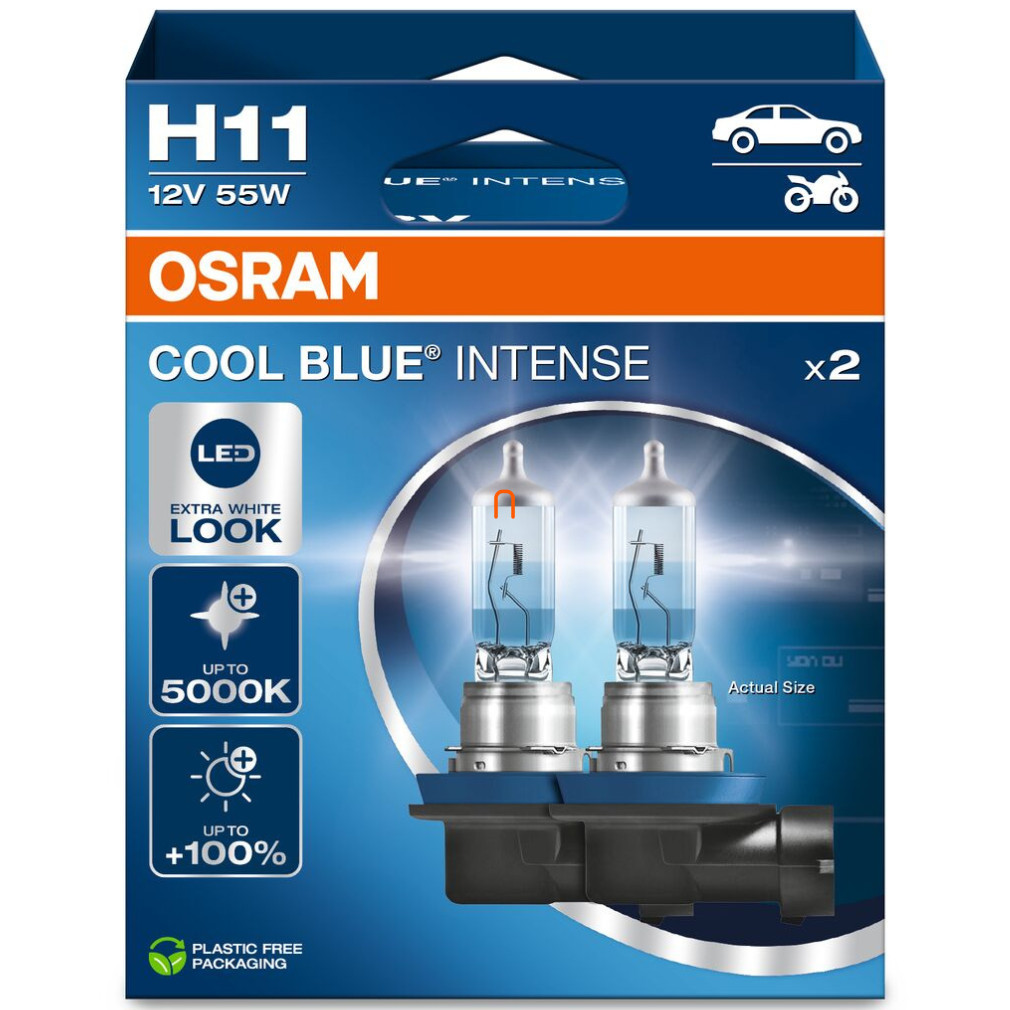 Becul halogen Osram Cool Blue® Intense (Next Gen) H11 este alegerea ideală pentru șoferii care caută o combinație între tehnologie de ultimă generație și aspect impresionant. Această bec de înaltă calitate nu numai că oferă o lumină albă suplimentară, dar creează și un efect LED modern, cu o temperatură de culoare de până la 5000 Kelvin. Această lumină rece, albăstruie, nu este doar elegantă, ci oferă și un contrast ridicat, care îmbunătățește vizibilitatea pe timp de noapte și reduce oboseala ochilor. Osram Cool Blue® Intense H11 oferă o luminozitate cu până la 100% mai mare decât standardul minim ECE, asigurând o vizibilitate sporită și timpi de reacție mai rapizi la volan. Acest lucru poate fi deosebit de util atunci când conduceți pe drumuri de țară, în condiții meteorologice nefavorabile sau pe întuneric. Becul funcționează la 12 V cu o putere nominală de 55 wați și are un flux luminos de 1350 lumeni cu o toleranță de ±10%. Becul cu soclu PGJ19-2 are o lungime de 67 mm și un diametru de 12 mm, ceea ce permite instalarea ușoară în majoritatea modelelor de vehicule cu soclu H11. Durata de viață a lămpii la Tc poate fi de până la 200 de ore, ceea ce este remarcabil în categoria sa, mai ales având în vedere puterea luminoasă mai mare. Designul modern cu capac argintiu arată deosebit de bine în farurile transparente și conferă oricărui vehicul un aspect premium. Produsul este conform cu standardul de omologare E1, ceea ce înseamnă că poate fi utilizat oficial în traficul rutier. Osram se află în fruntea tehnologiei de iluminat auto de peste 100 de ani și, prin dezvoltarea continuă, se asigură că cele mai recente inovații sunt disponibile pentru utilizatorii obișnuiți. Această lampă este alegerea perfectă pentru oricine dorește să iasă în evidență în trafic fără a compromite siguranța. De asemenea, este o alegere excelentă pentru proprietarii de mașini deosebit de exigenți, preocupați de design, care caută un efect LED cu tehnologie halogenă. Cu toate acestea, nu este recomandată celor care preferă iluminatul galben, cu tonuri mai calde, deoarece acest tip funcționează cu o temperatură de culoare distinct rece. Ambalajul ecologic contribuie, de asemenea, la faptul că acest produs îndeplinește toate așteptările actuale. Alegeți Osram Cool Blue® Intense (Next Gen) H11 dacă căutați echilibrul perfect între stil, performanță și siguranță în iluminatul mașinii dvs.