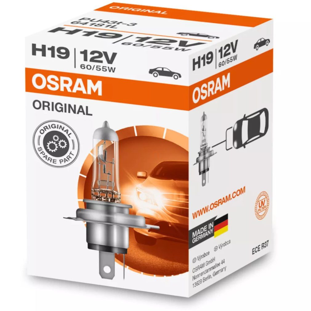 Far halogen Osram Original Line 12V H16, performanță fiabilă, iluminare de calitate OEM, 64219L+, 1 buc./cutie
