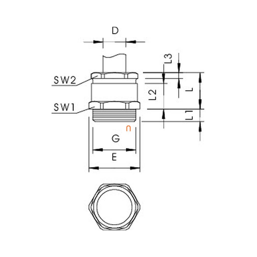 Garnitură metalică, PG16 cu garnitură inelară multistrat PG16 8-16 mm IP54 162 MS 2082543 OBO