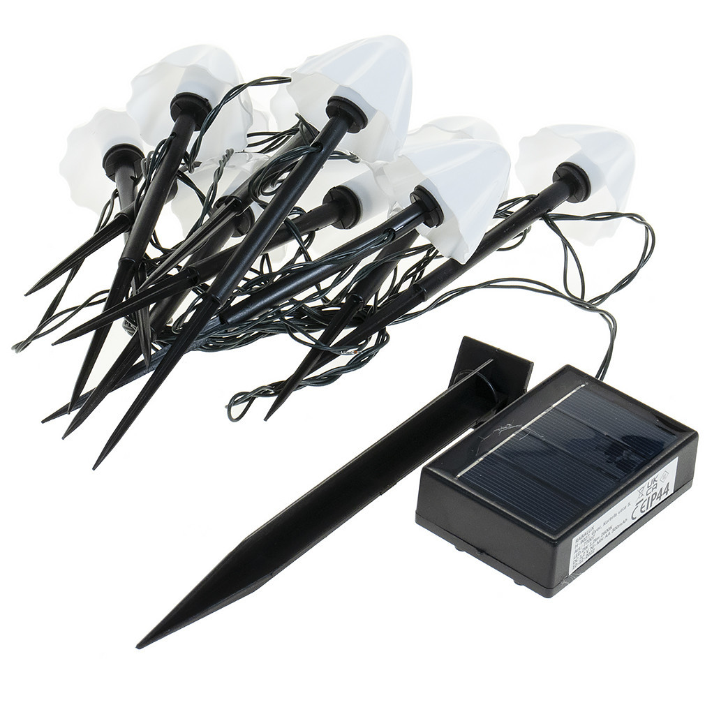 Ghirlandă luminoasă LED cu ciuperci de pădure, țăruș pentru fixare în pământ, alimentată cu energie solară, 10 bucăți/set - Skadar Rábalux 77007