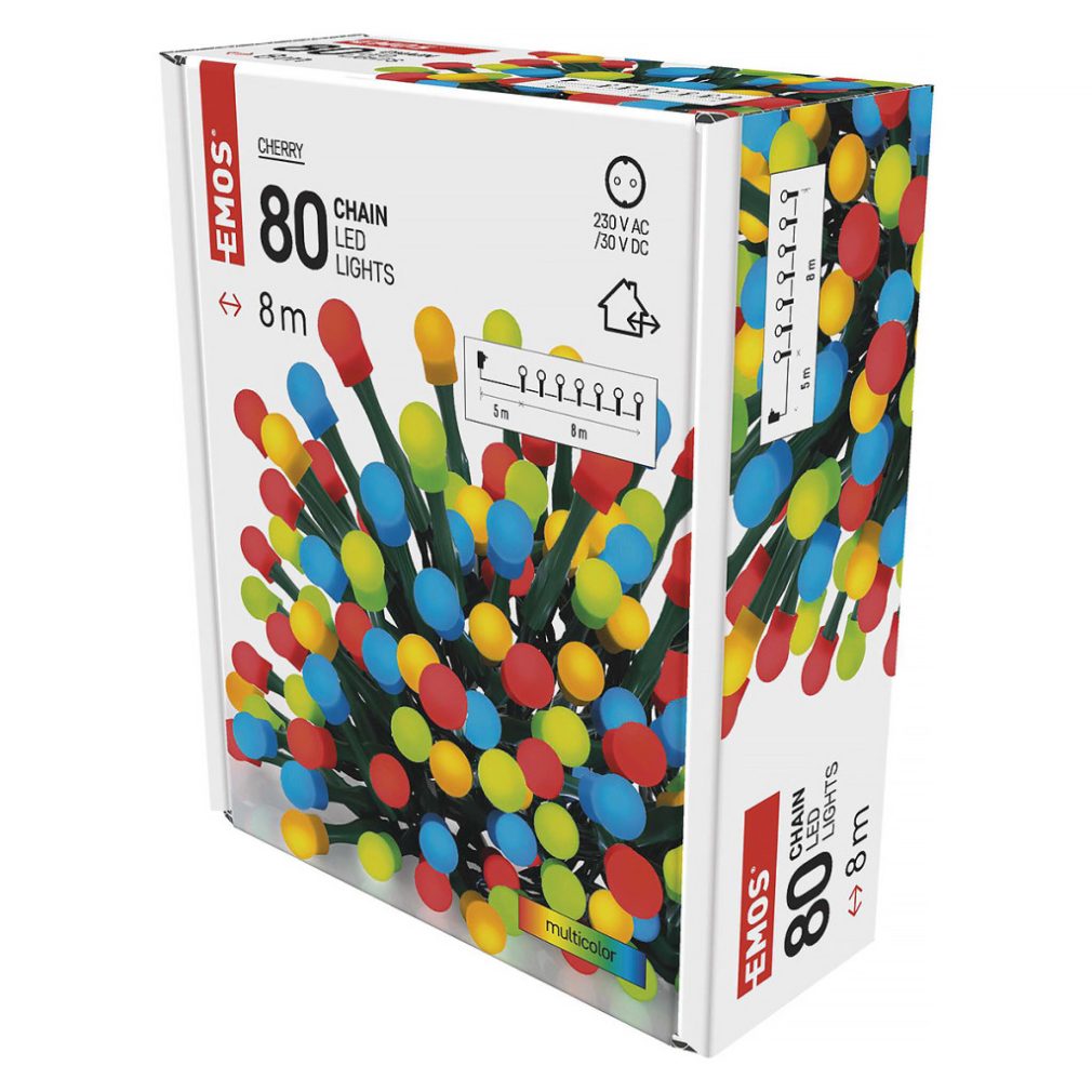 Acest șir de lumini LED de Crăciun în formă de cireșe, multicolore, lungi de 8 metri, este alegerea perfectă dacă doriți să creați o atmosferă festivă cu adevărat veselă și colorată în casa sau chiar în grădina dvs. Dispunând de 100 de bile LED viu colorate, șirul de lumini va atrage cu siguranță atenția și va aduce un zâmbet pe fața oricărei persoane care le privește. Buretele în formă de cireșe dau șirului un aspect unic, jucăuș, care va ieși în evidență în orice decor.