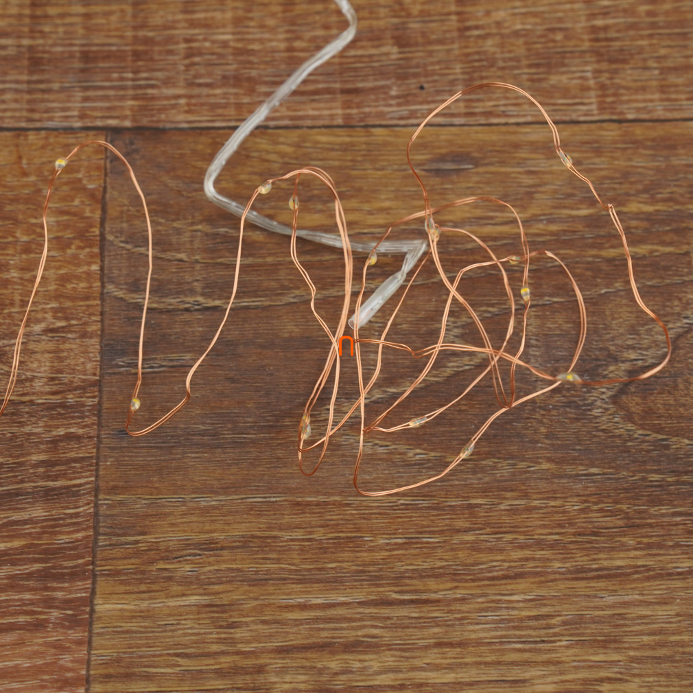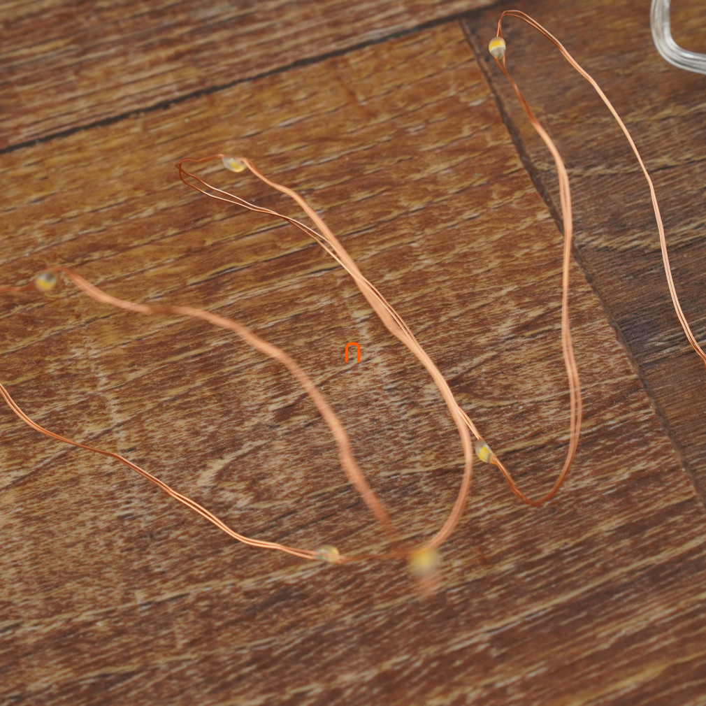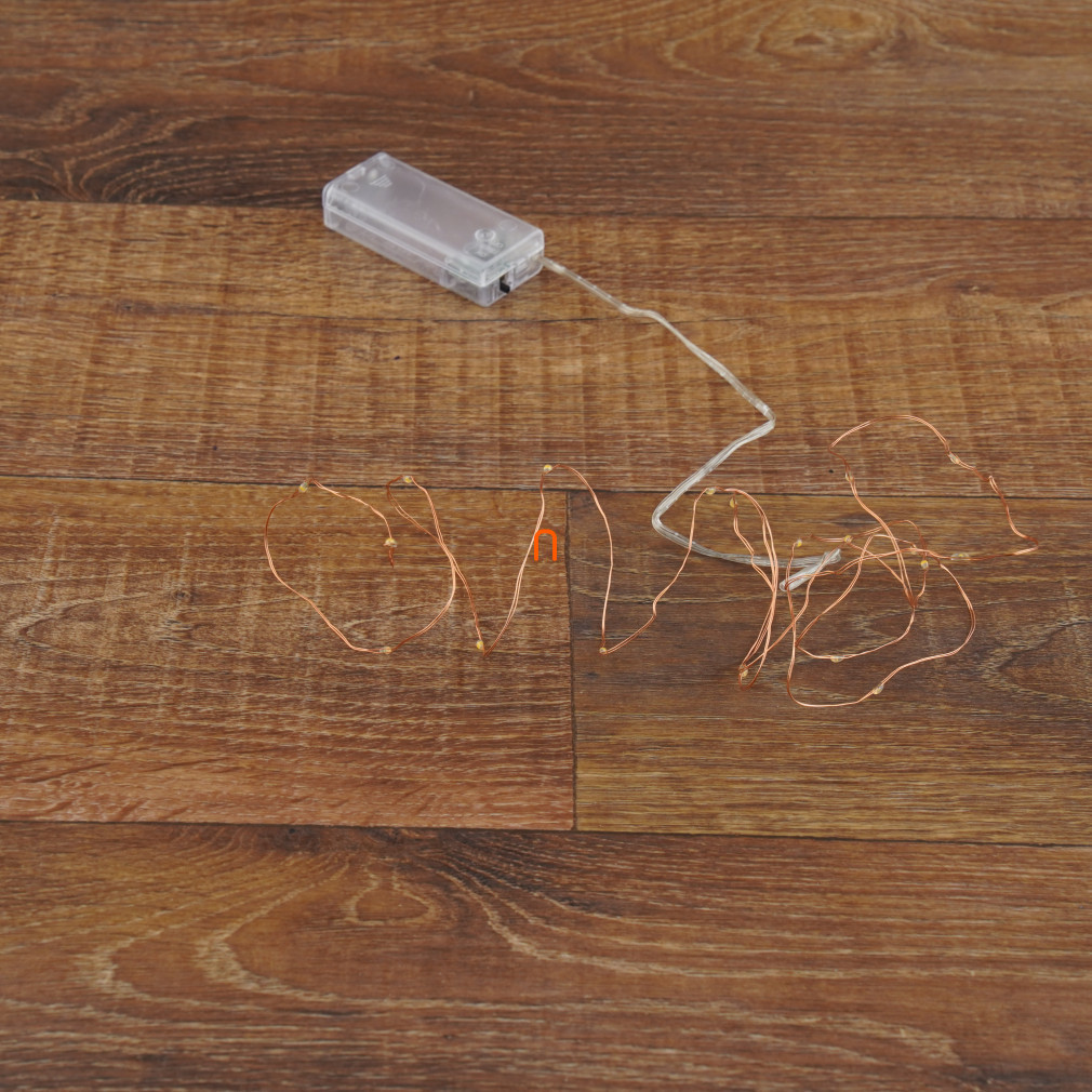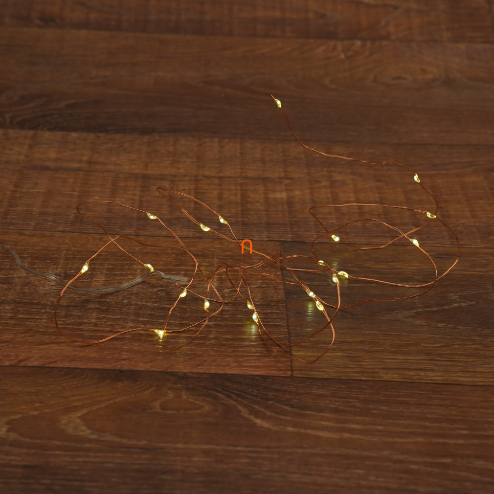 LED-urile strălucitoare și punctiforme sunt distanțate la 10 cm, asigurând distribuirea uniformă a luminilor pe întreaga lungime a șirului. Șirul este alimentat de 2 baterii de 1,5 V (AA), care nu sunt incluse, dar sunt ușor de obținut, astfel încât șirul poate fi plasat cu ușurință oriunde în casă, fără a fi nevoie de o priză electrică.
