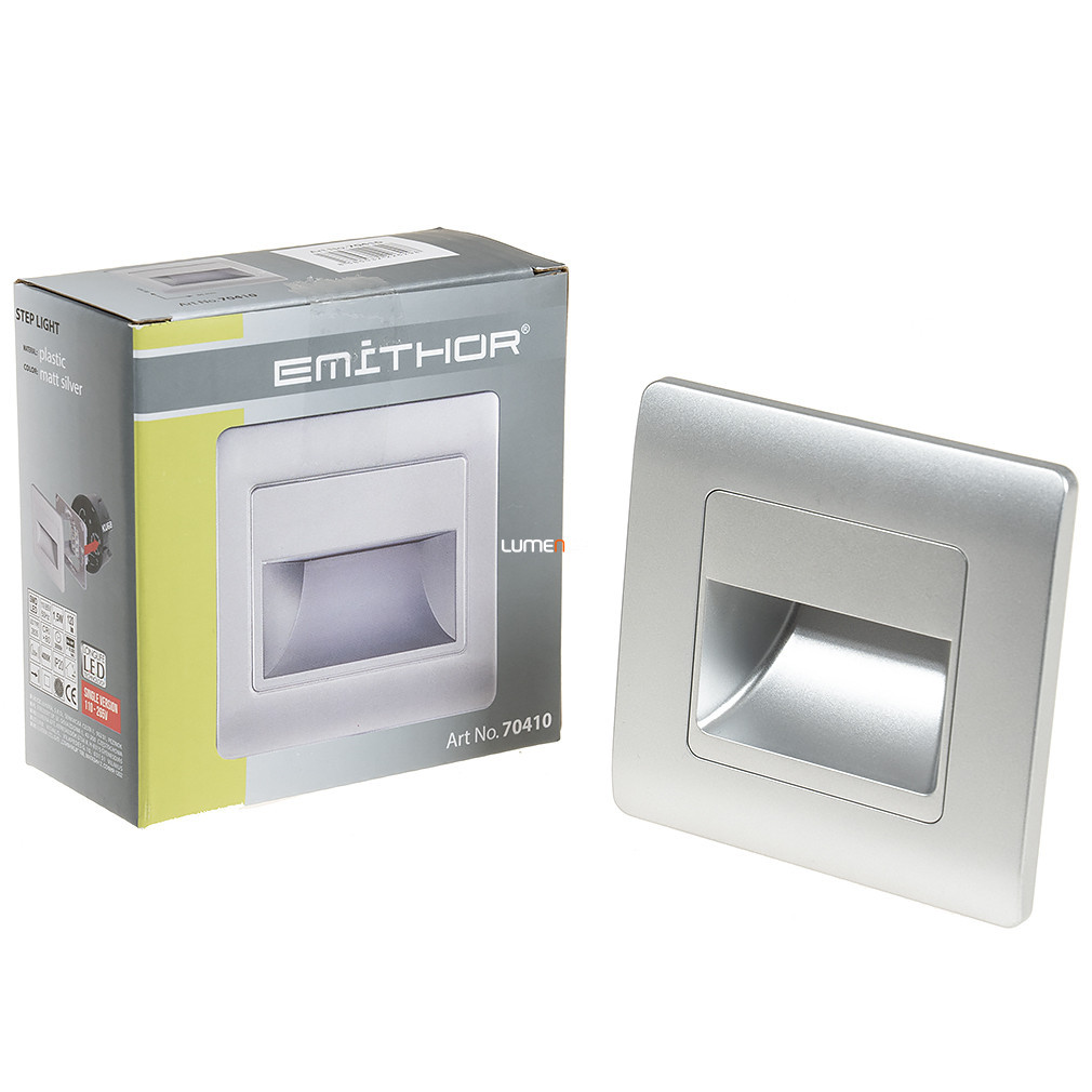 Lampa de scară încastrată cu LED Step Light Emithor 70410 este un corp de iluminat cu design modern, care emite o lumină albă rece și funcționează cu un modul LED de 1,5 W. Lampa oferă un flux luminos de 120 lumeni și are o temperatură de culoare de 4000 Kelvin, evidențiind în mod eficient contururile scărilor cu un efect de lumină naturală. Carcasa din plastic de culoare argintie are protecție IP20, fiind ideală pentru utilizare în interior. Corp de iluminat măsoară 86x86 mm și are o adâncime de instalare de 10 mm. Durata medie de viață este de 30.000 de ore, iar corp de iluminat nu este reglabil. Modulul LED este încorporat și nu trebuie înlocuit. Produsul cântărește 0,15 kg și vine într-un ambalaj compact, fiind ușor de transportat și instalat.