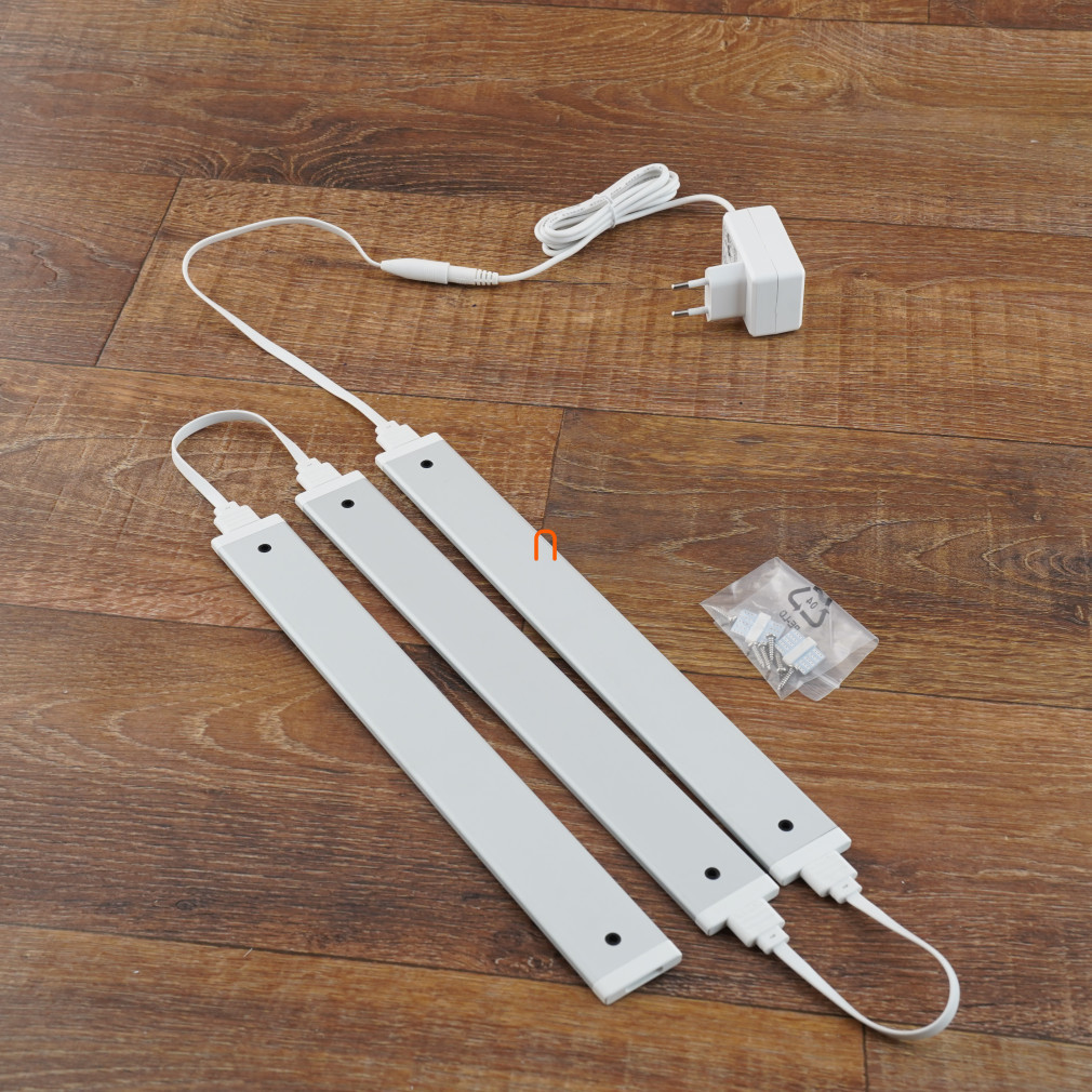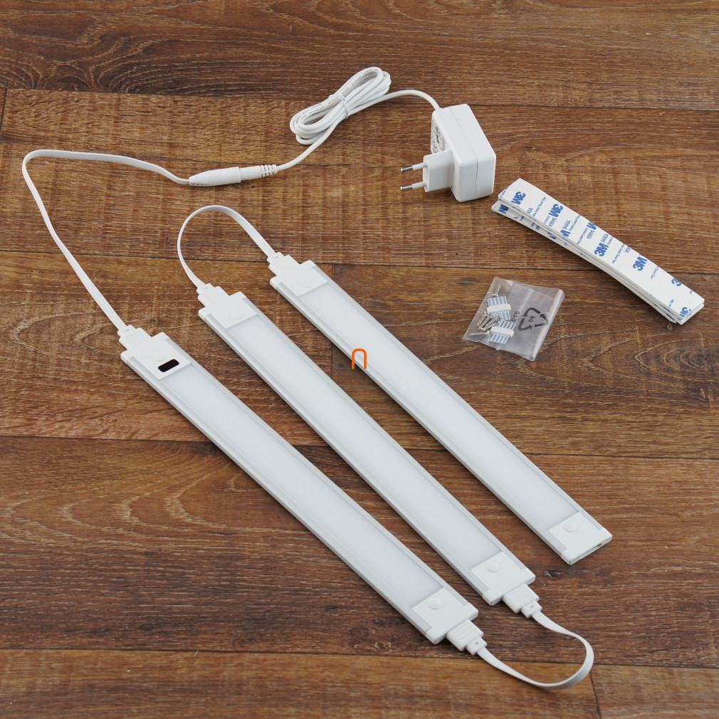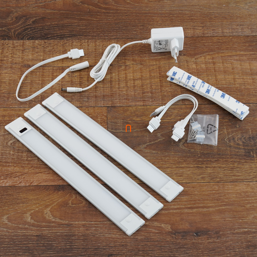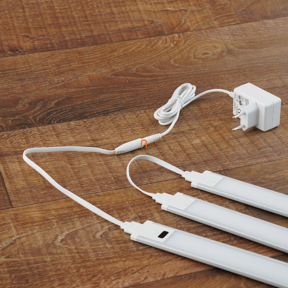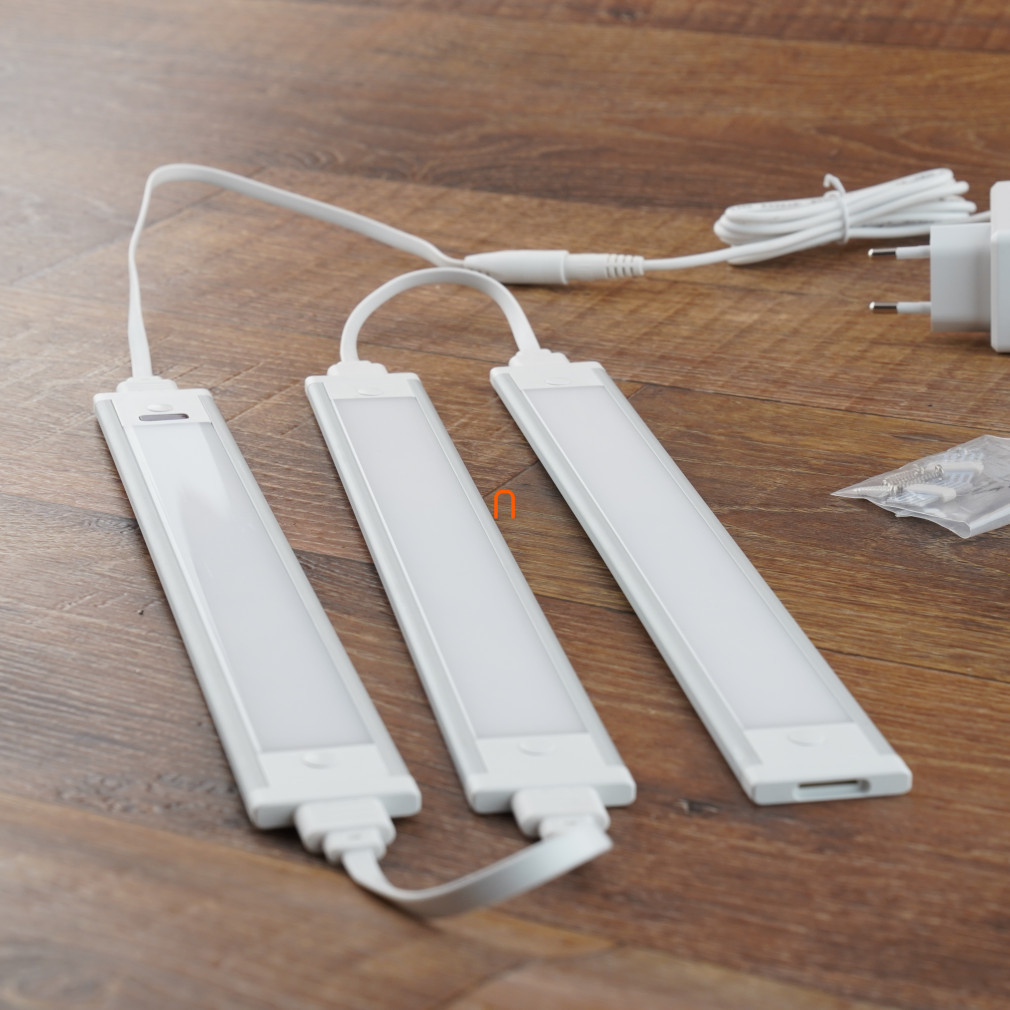 Iluminat LED pentru mobilier 12V 3x1,5W 4000K 3x135lm, luminozitate reglabilă, IP20 3 piese, 300x35x6,2mm, cu difuzor opal, adaptor, comutator fără atingere - deLux DEL1728