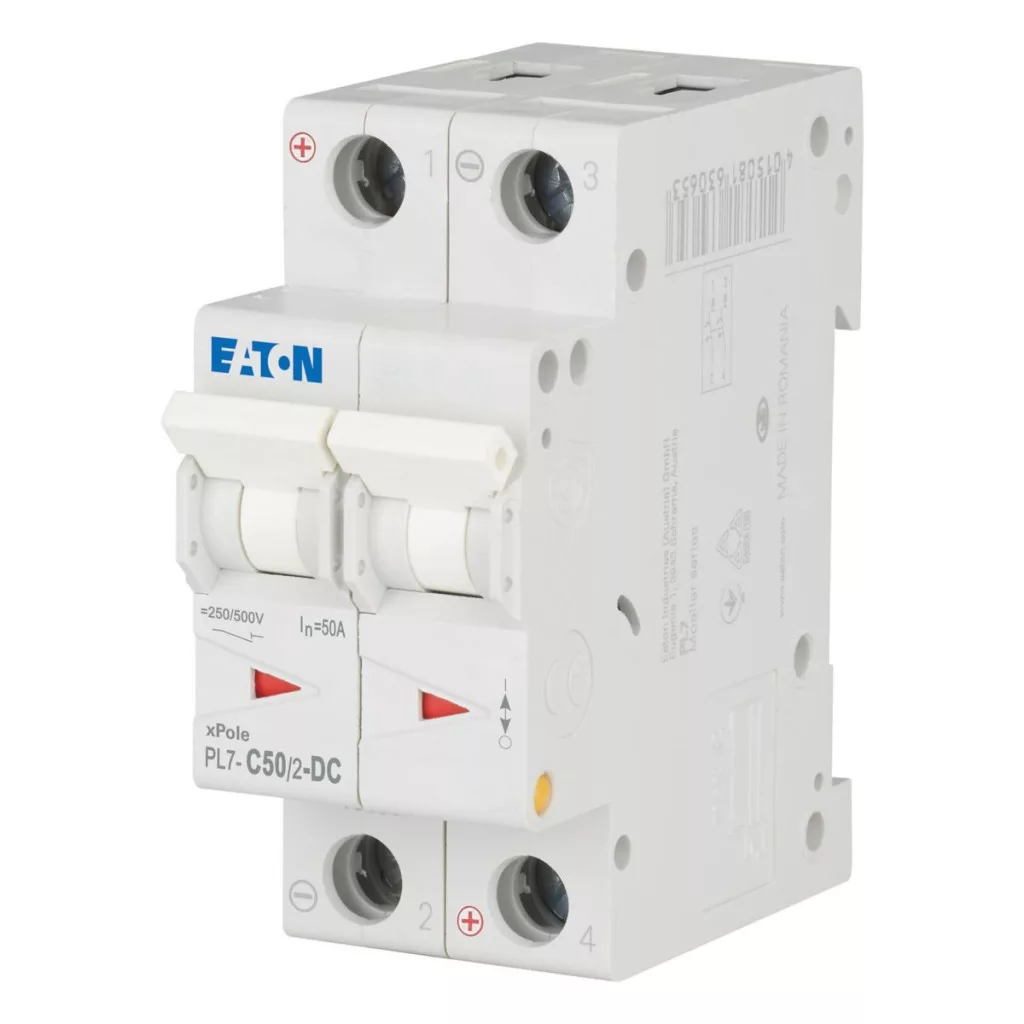 Eaton 264907 PL7-C50/2-DC Întrerupător automat miniatural, 10 kA, 2 poli, curent continuu