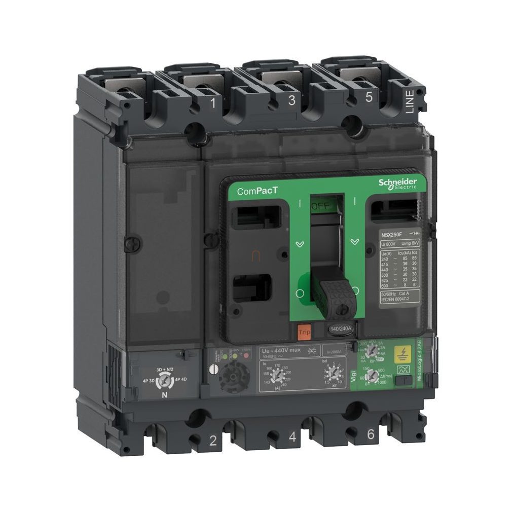 Întrerupător compact NSX160B 25kA Micrologic 4.2-AB Unitate de declanșare Vigi 160A 4P4D C16B44B160 Schneider