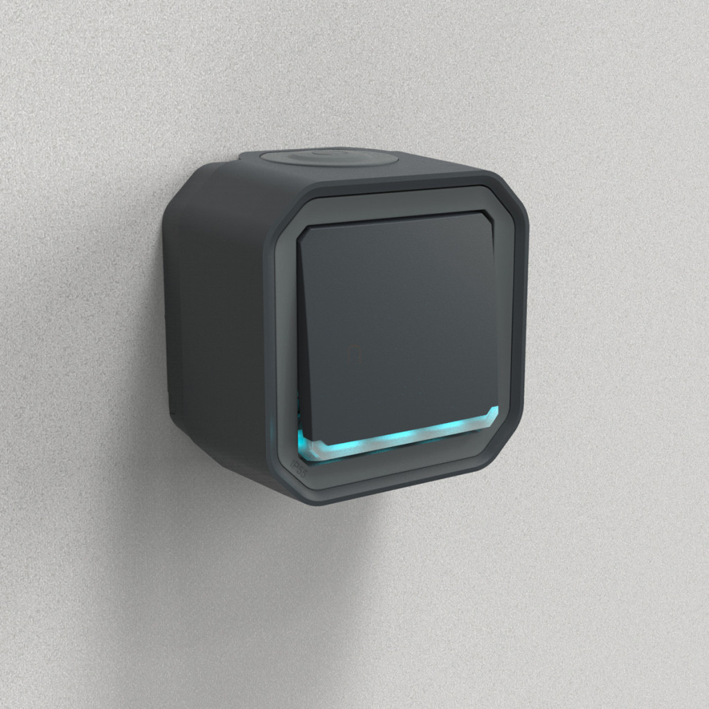 Întrerupător de perete Plexo 55 cu indicator luminos, 10A, asamblat, antracit 069721L Legrand