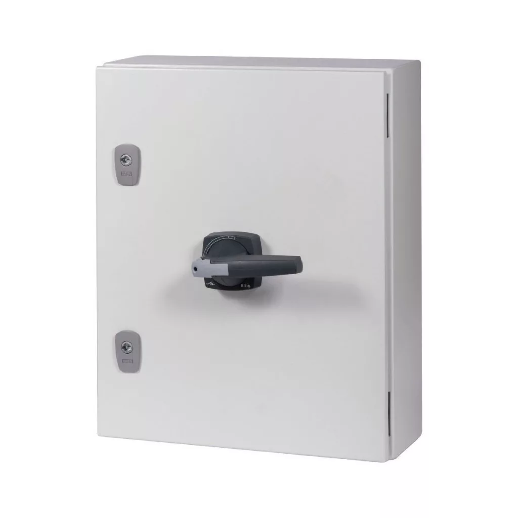DMV-250/4/SE5/P-G Întrerupător de deconectare DUMECO, 250 A, 3+N, N conectat, în carcasă din oțel IP65, cu mâner gri blocabil 197338 Eaton