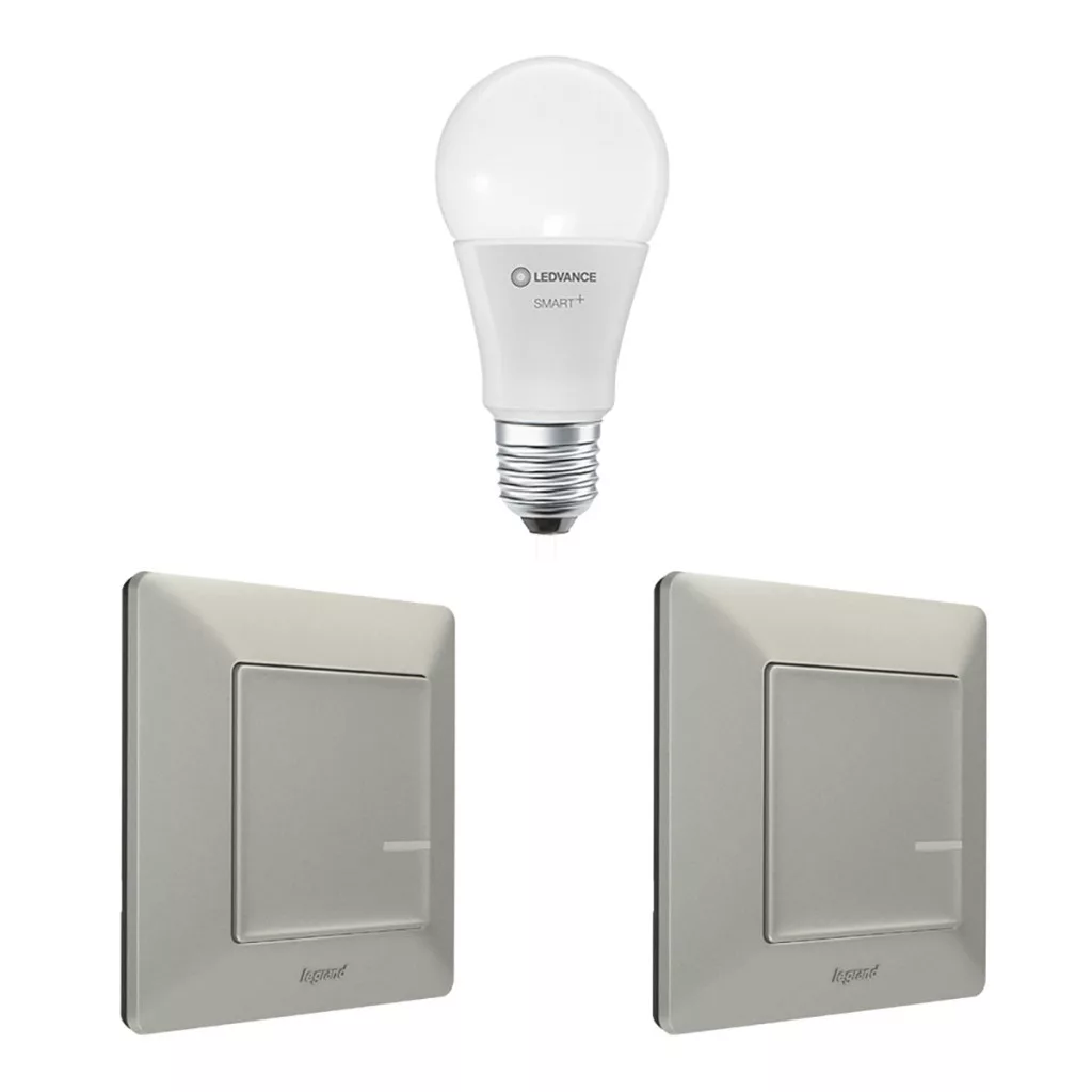 Valena Life cu comutator wireless Netatmo, titan (2 buc.) + bec clasic Ledvance SMART+ E27
