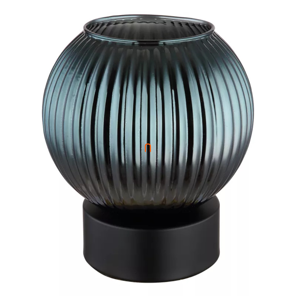 Lampă ambientală în albastru petrol, sticlă striată, 17 cm - Zumba Globo 15638TP - comutator basculant, soclu 1xE27, 230 V