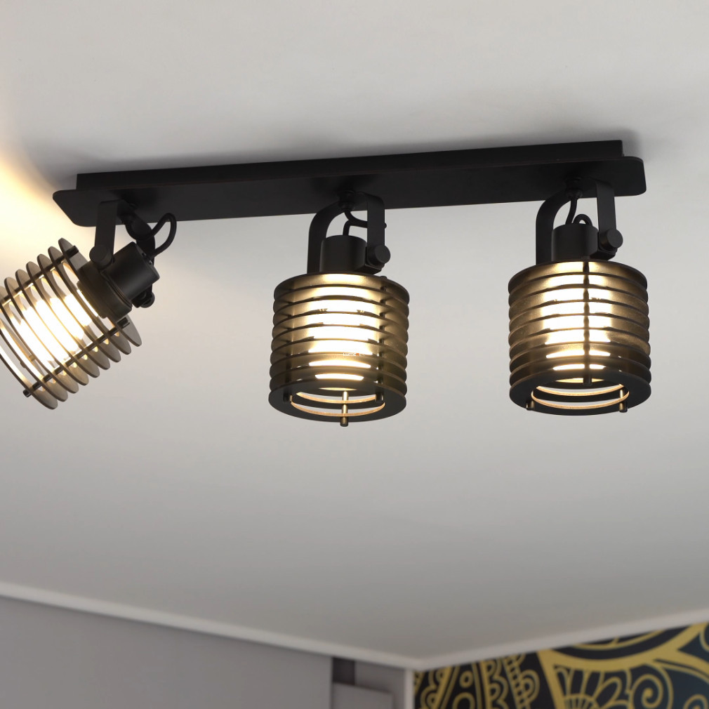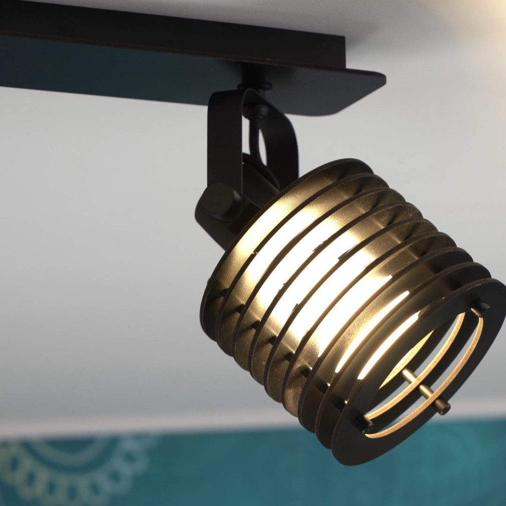 Spotul negru Segovia Eglo 900742 are trei socluri E27, astfel încât poate fi utilizat cu surse de lumină înlocuibile, permițându-vă să alegeți intensitatea luminii, temperatura culorii și puterea dorite. Corpul de iluminat este realizat dintr-o combinație de oțel și lemn, ceea ce îi conferă un aspect modern și durabilitate. Lampa de tavan are un grad de protecție IP20, fiind potrivită pentru utilizare în interior. Dimensiunile produsului sunt: lungime 575 mm, înălțime 185 mm. Dimensiunile ambalajului sunt 61 cm lungime, 15 cm lățime și 14 cm înălțime. Lampa nu include sursa de lumină. Producătorul este EGLO.