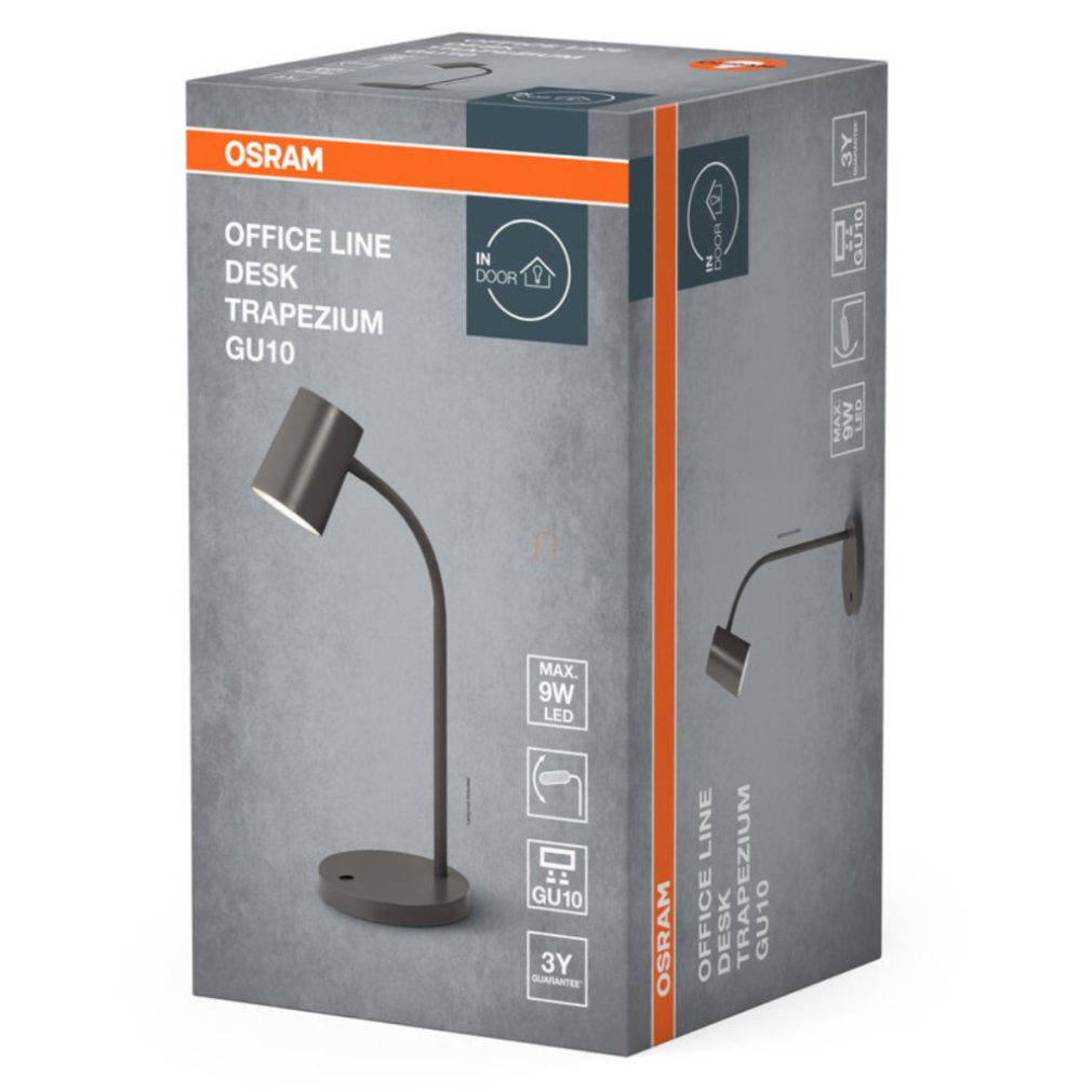 Lampă de birou, 36,5 cm, gri - Osram Office Line Desk Trapezium, cu soclu 1xGU10, cablu de 1,6 metri, 220-240 V